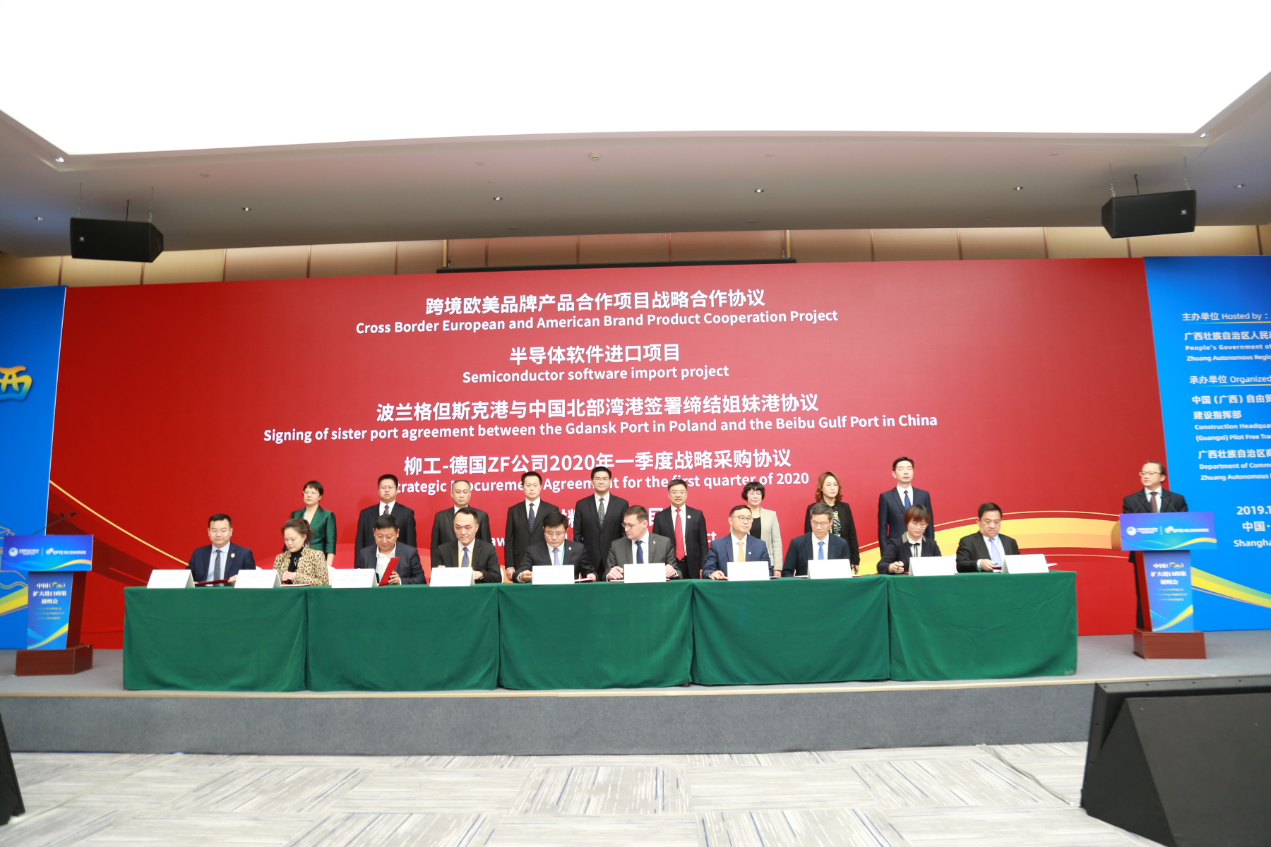 據悉,首屆進博會期間,廣西組織了1200多家企業參加洽談交易,成交金額7.1億美元。本屆進博會,廣西交易團共組織製造業、批發零售業、農業、信息技術、商務服務、醫療衛生、食品加工、汽車等1353家企業、1800多名採購商參會。會上,廣西北部灣港國際港務集團有限公司與波蘭格但斯克港務局股份有限公司簽署締結姐妹港協議,8家廣西企業與8家外方企業簽署合作協議,涉及高端設備採購、跨境電商合作、丙烷脫氫裝置專利進口、半導體軟件進口等。