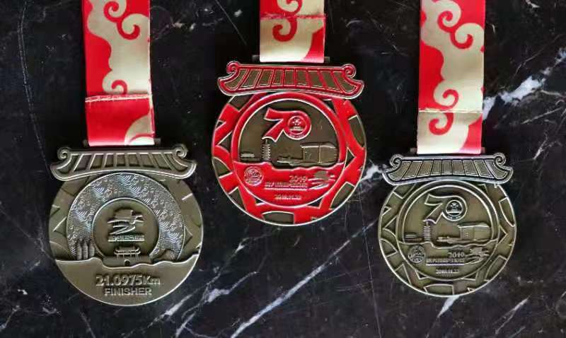 獎牌是對完賽者的禮贊,更是城市文化與現代體育精神的完美契合。本次嘉馬獎牌採用紅黃相間為主要配色,獎牌上方採用古建築屋簷造型,鮮紅的數位「70」占主要位置,代表本屆「嘉馬」喜逢新中國成立70周年,獎牌圖案主要融入了嘉興子城、壕股塔等地標建築,以及象徵中國革命之源的南湖紅船,既展示了嘉興悠久的歷史文化,更彰顯了嘉興是中國革命航船起航地和「紅船精神」發源地這一獨特的政治地位。獎牌的背景突顯的是「嘉馬」會徽以及相應的賽程里程數。