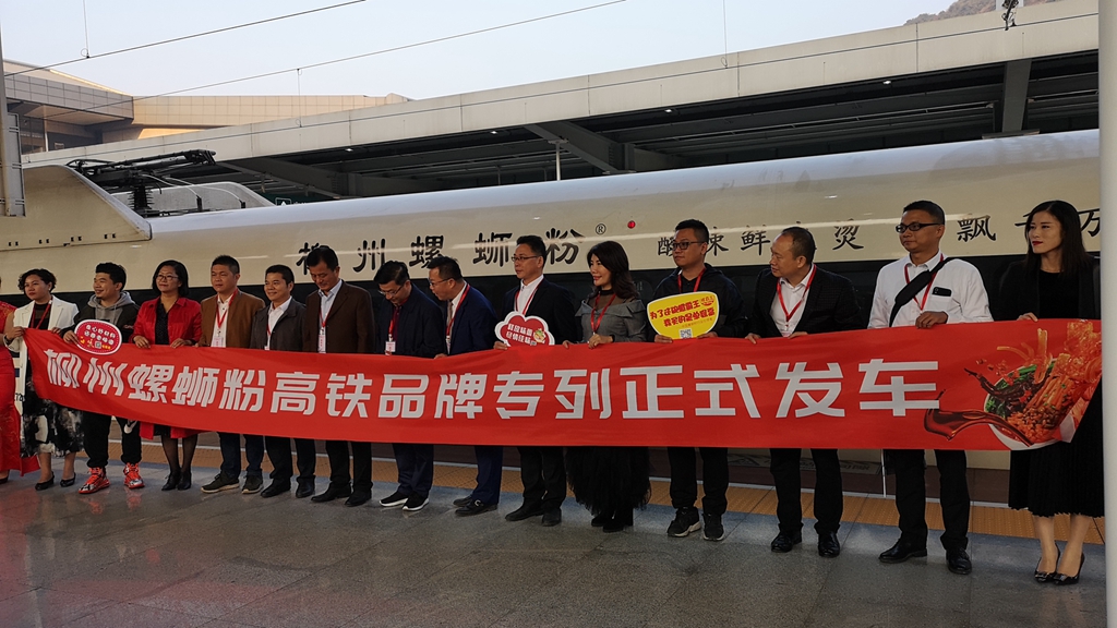 【香港商報網訊】記者 歐陽萍 報導:11月9日,「柳州螺螄粉」動車組冠名首發儀式在廣西柳州火車站舉行。以「柳州螺螄粉」號冠名列車旨在充分利用高鐵列車的傳播優勢,全面提升及展示柳州螺螄粉和柳州城市形象和魅力。同時,「柳州螺螄粉」作為「桂字號」系列產品將藉助高鐵宣傳持續發力,這將標誌着柳州螺螄粉正式搭乘中國速度,再登品牌傳播的新台階。