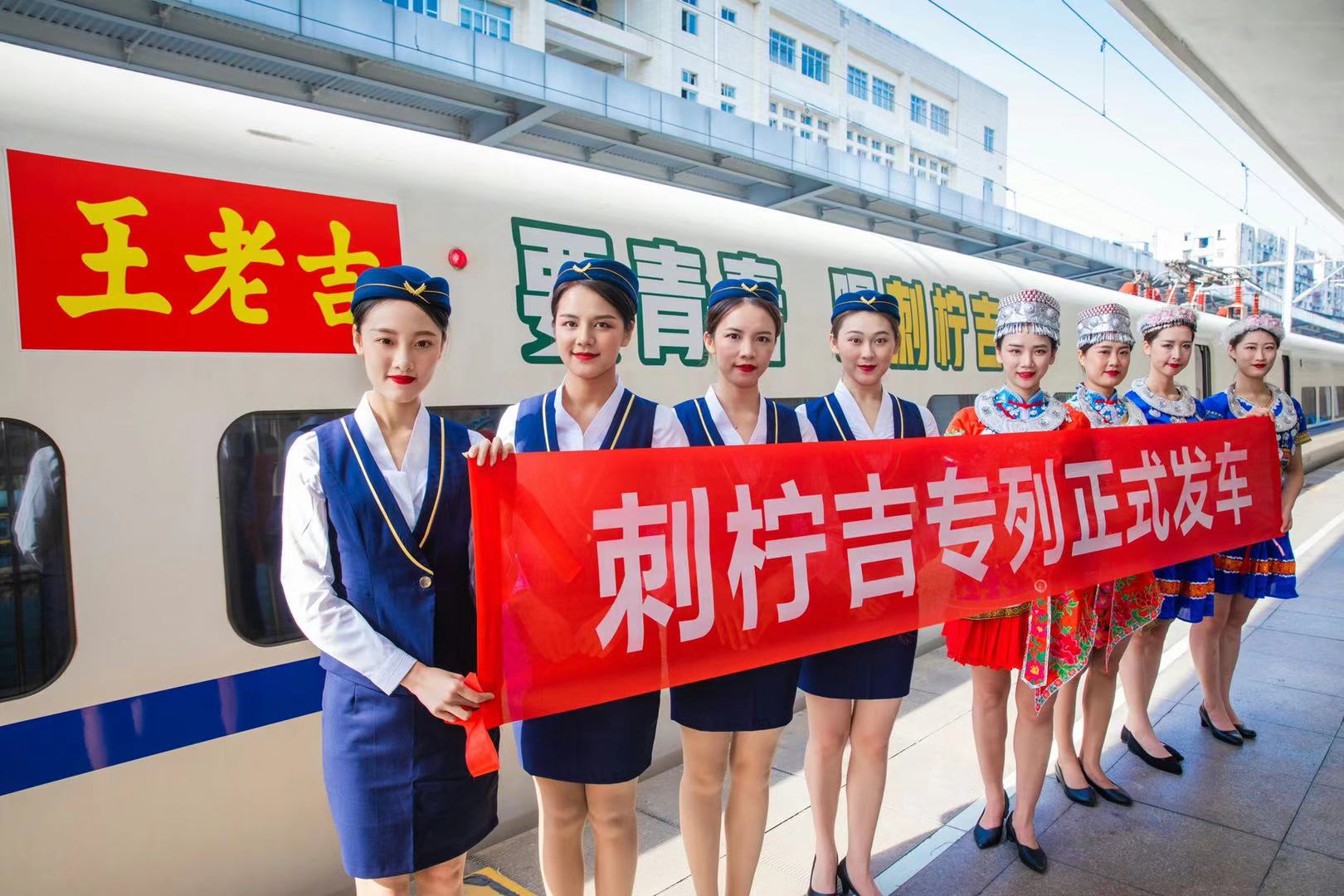 「刺檸吉號」是由廣葯集團王老吉冠名的「廣州-貴陽」高鐵專列,隨着刺檸吉號的正式啟動,預示着東西部扶貧協作,特別是貴州刺梨產業的開發,已在粵黔兩省的共同努力下,高速高效駛上了快車道。