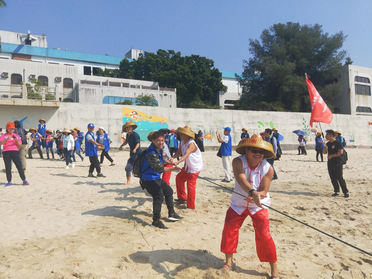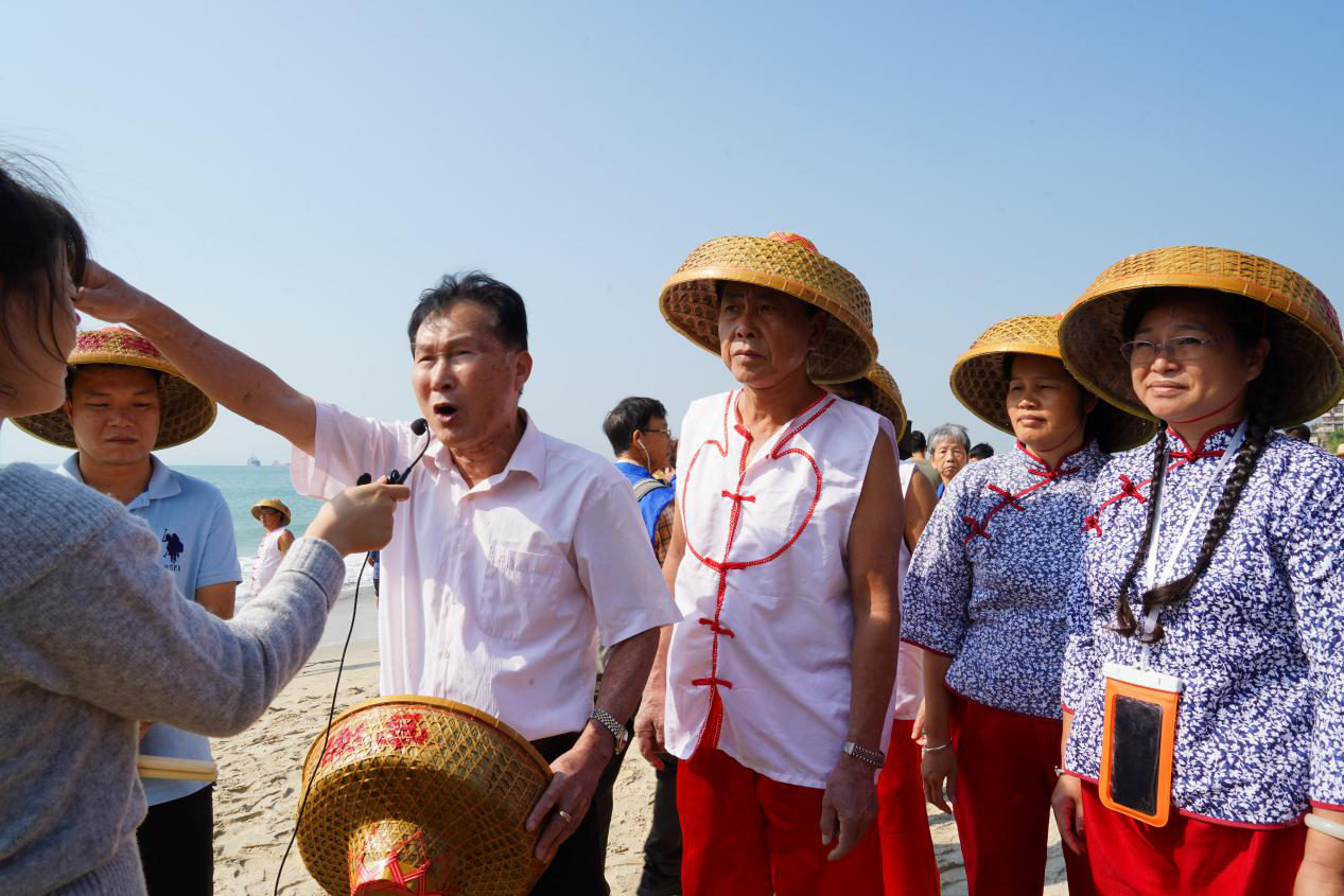 秋高氣爽,活動第一站就是體驗大鵬非遺專案《官湖望魚嶺捕魚技藝》,代表性傳承人邱月明老師傅帶領村民們撒網捕魚“牽沙罟”,伴隨著 “嗨喲、嗨喲”的號子聲、漁歌聲,200多年前的捕魚技藝再次重現,大家齊心合力拉起漁網,宏大的場面再現了祖先們敢於創造、團結勞動的生活智慧。