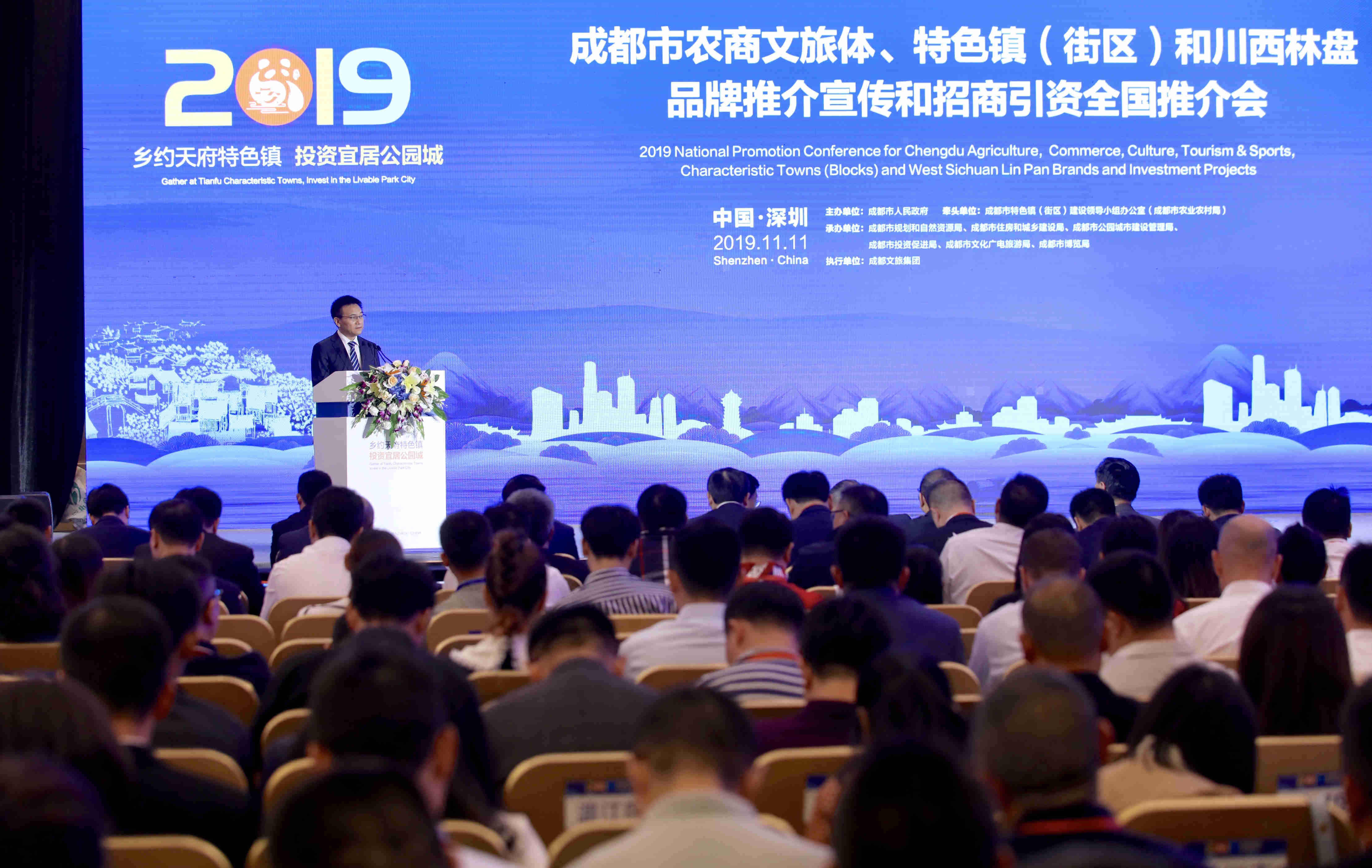 【香港商報網訊】記者 朱開芝 報導:「鄉約天府特色鎮 投資宜居公園城」。日前,2019年成都市農商文旅體、特色鎮(街區)和川西林盤品牌推介宣傳和招商引資推介會在深圳市隆重舉行,成都良好的生態本底、豐富的人文歷史資源和優良的營商環境吸引了社會各界客商的目光,現場項目簽約金額達440.95億元。