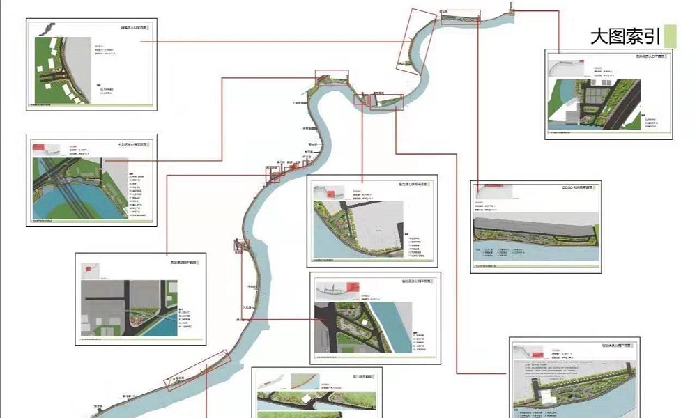 茅洲河河岸景觀工程的9個主題園區分佈圖