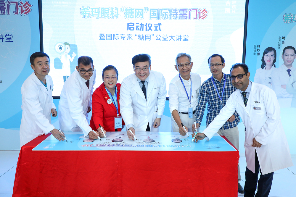 為幫助更多糖尿病人能夠享有專業的眼底醫生診療,11月14日,深圳希瑪眼科「糖網」國際特需門診正式成立,門診匯聚了由「世界眼科人物100強」林順潮教授領銜的疑難眼底病診療專家團隊,團隊成員包括有香港、內地以及海外7名知名眼底專家,讓深圳市民及「糖網」患者在家門口就能獲得國際品質的眼底診療技術及服務。