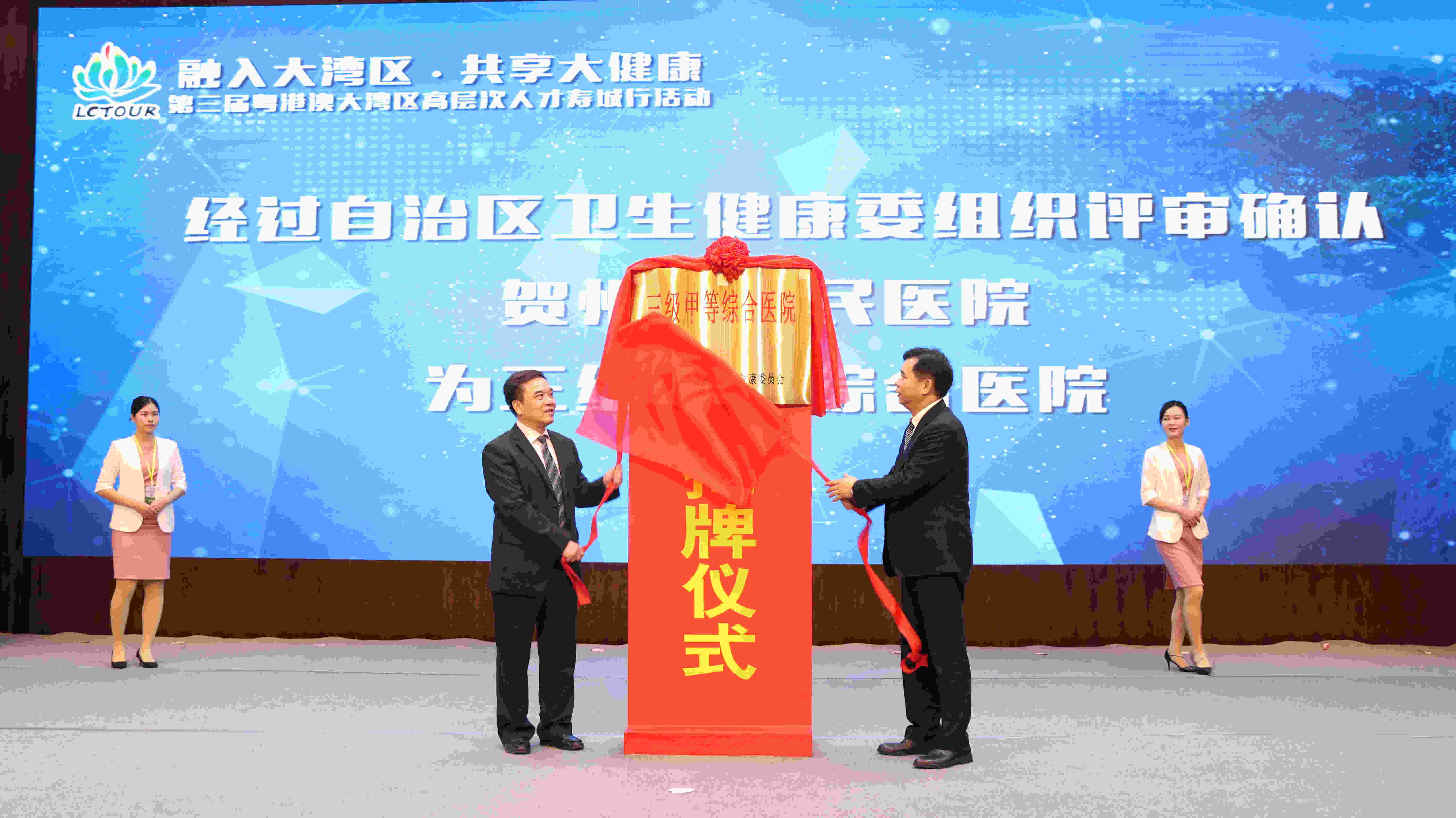 自治區黨委「不忘初心、牢記使命」主題教育第三巡迴指導組組長、自治區政協常委趙發旗,自治區衛健委副主任麥家志出席會議,自治區區衛健委、民政廳相關處室的領導,以及參加第三屆粵港澳大灣區高層次人才壽城行活動的大灣區相關高校、醫療機構、企業、智庫和科研院所等相關負責人,賀州市領導林冠、陳遠明、呂松、卿湯義、唐玉梅,賀州學院黨委書記梁丁丁參加了相關活動。