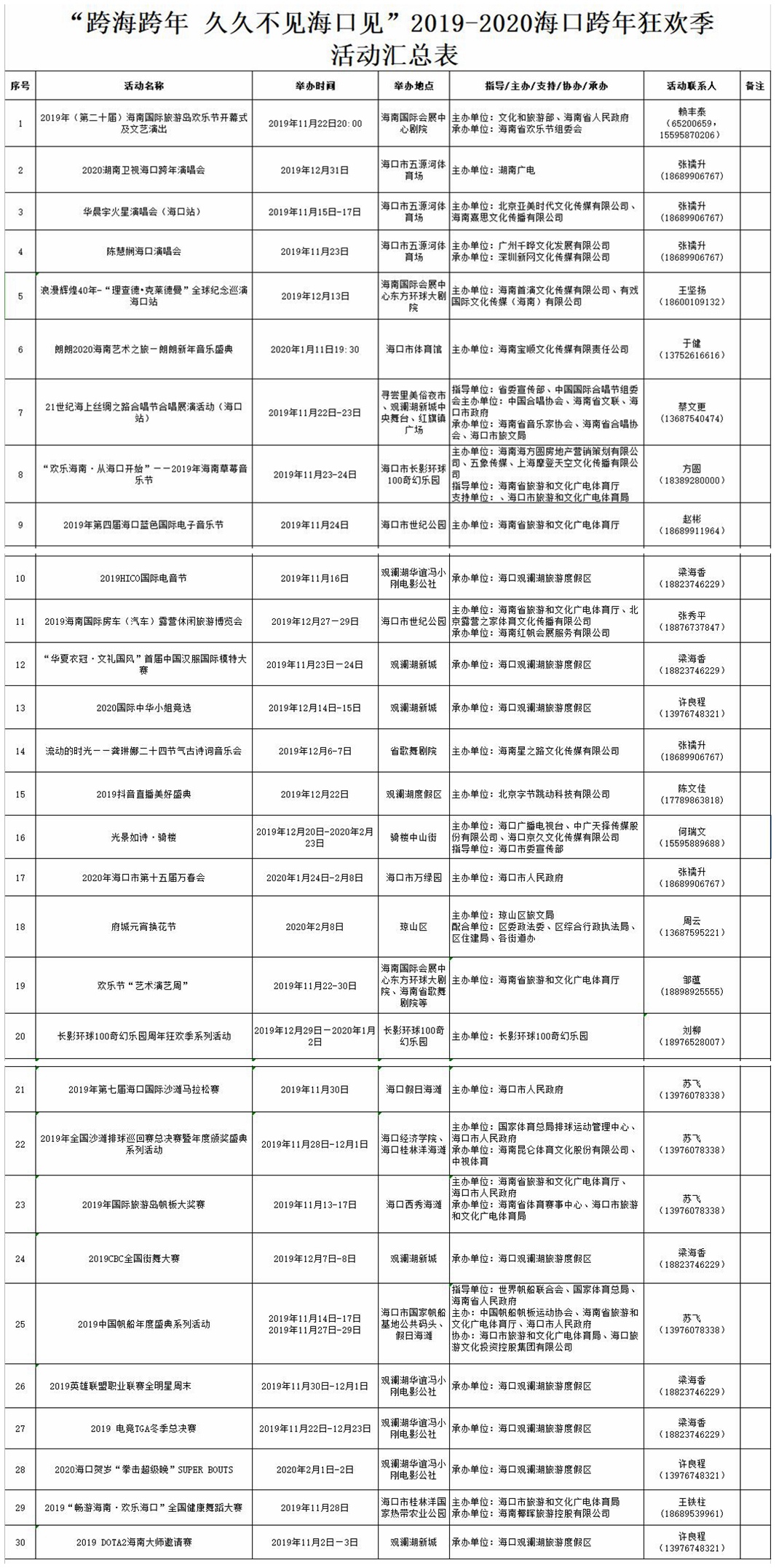 據悉,為了貫徹落實海南部署推進的國際旅遊消費年活動,海口策劃了大量的活動,研究許多優惠和保障政策,以湖南衛視跨年演唱會首次在海口舉辦為中心,策劃了主題為“跨海·跨年久久不見海口見”的跨年狂歡季活動。