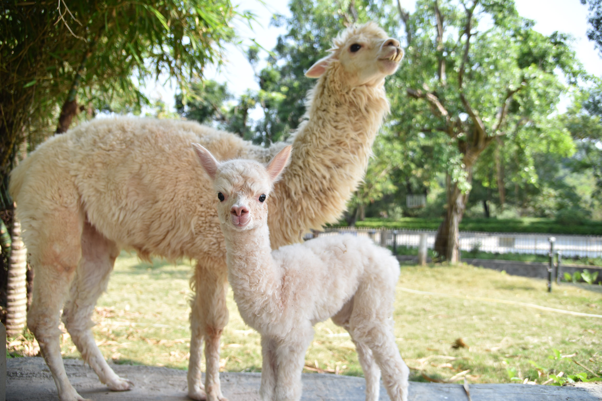 目前,深圳野生動物園放養有羊駝(Alpaca)和大羊駝(Llama)。羊駝的體型要比大羊駝體型小,羊駝的耳朵較小且不彎曲,背部有點彎曲。而大羊駝的耳朵狹長可以彎曲,背部是直的。大羊駝家族在該園每年都有繁殖,而羊駝家族是該園第一次成功繁殖羊駝寶寶。