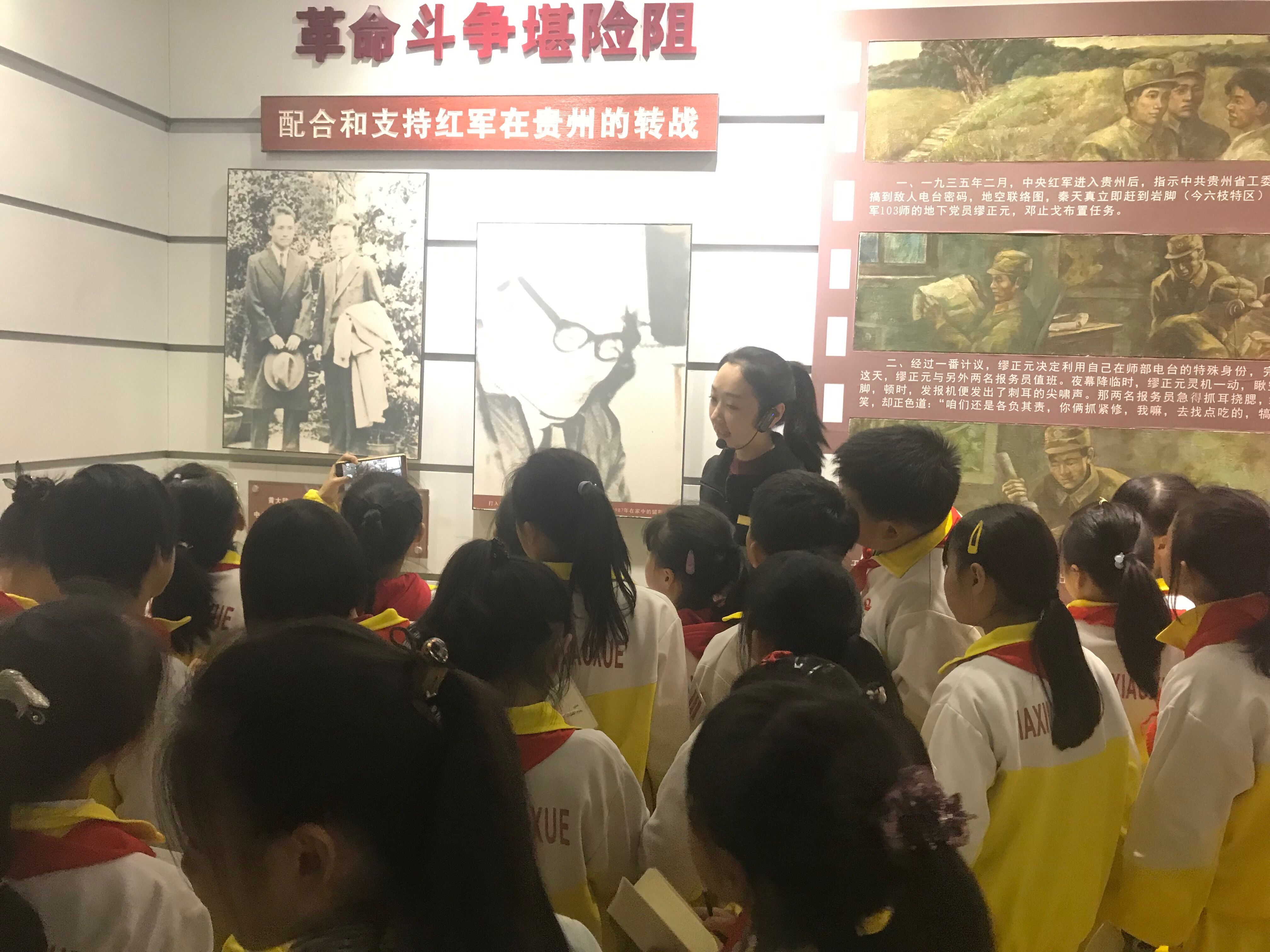 「讓紅色文化薪火相傳,我們組建了一支20餘人的紅色文化講解員隊伍,給學校的隊員們介紹紅色文化長廊里革命英雄事迹和故事。」甲秀小學大隊輔導員殷立介紹,甲秀小學去年被貴州省委黨史研究室授予「紅色文化進校園示範點」。今年,我們把大隊委和講解員帶進愛國主義教育基地,就希望通過這樣的實踐活動,讓他們成為紅色文化志願者,不僅在學校講述革命故事,也能走出學校,到省工委舊址做一名志願講解員。