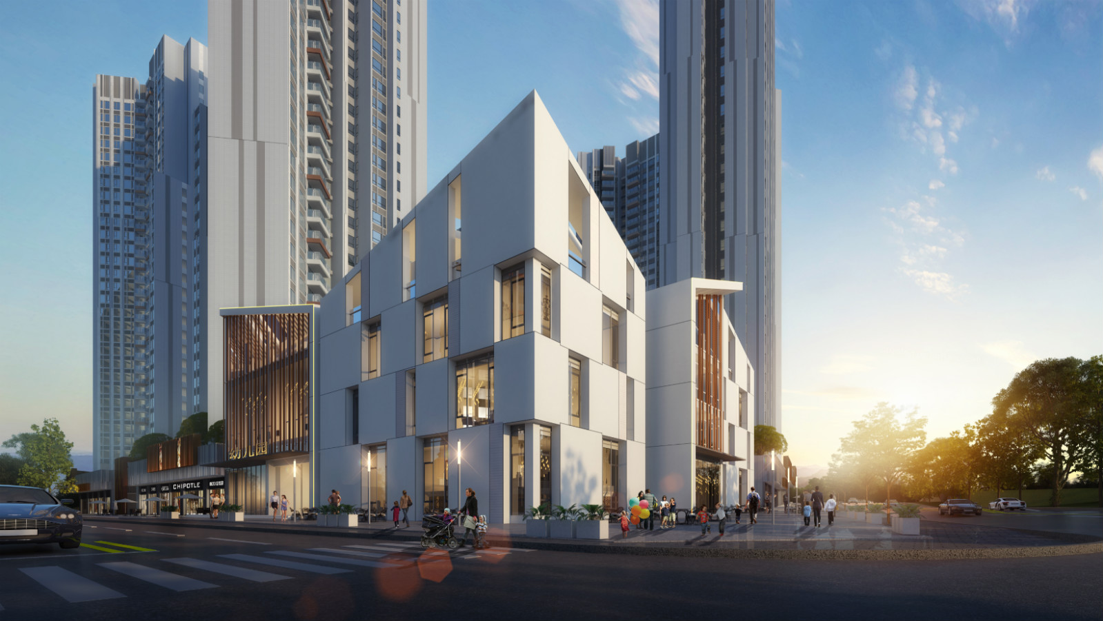 方直穀倉府總占地約5.8萬㎡,總建築面積約36萬㎡。打造城市客廳級主入口廣場,緊密連接社區和市政公園, 並特別設置10個現代簡約的球形建築,象徵著生活的十全十美。