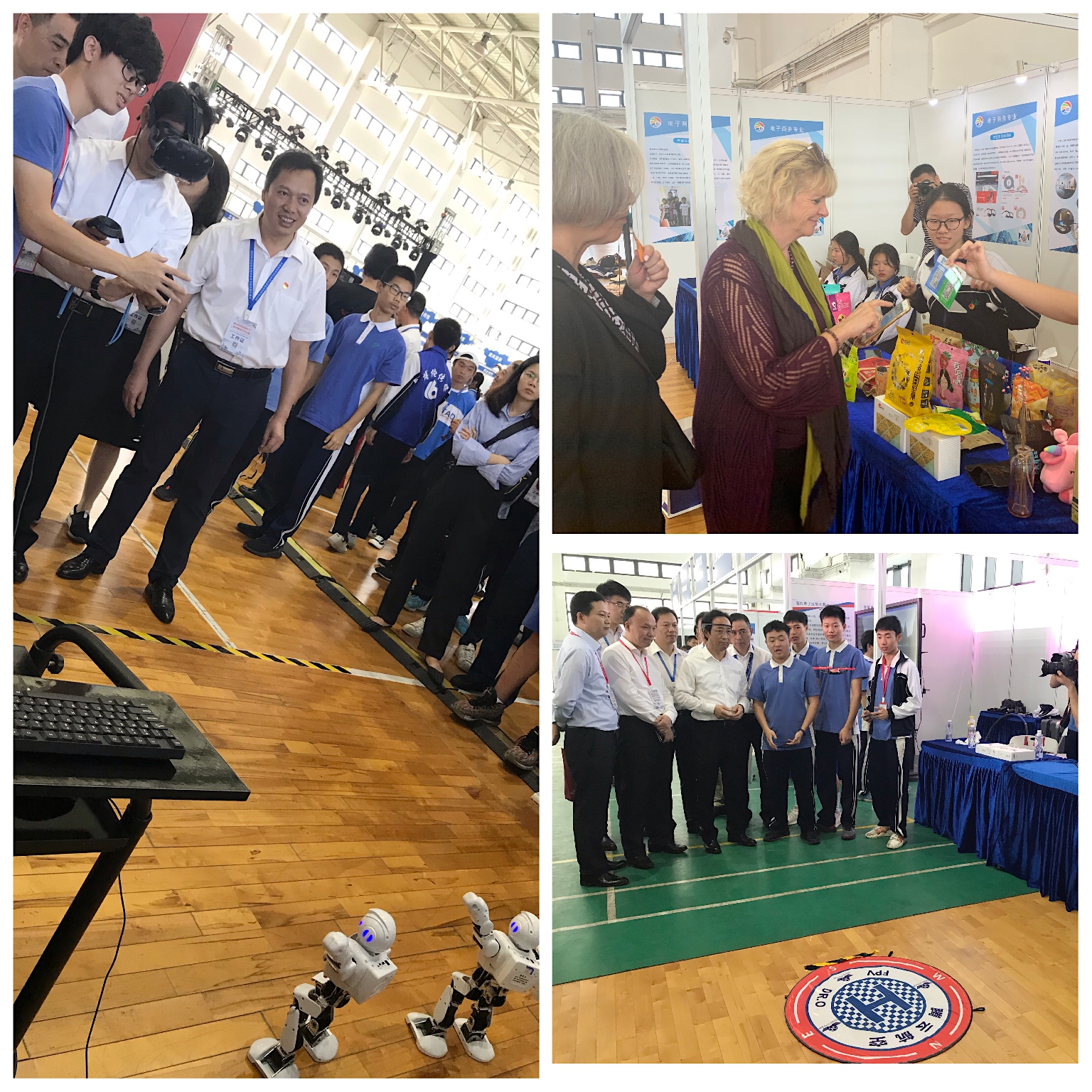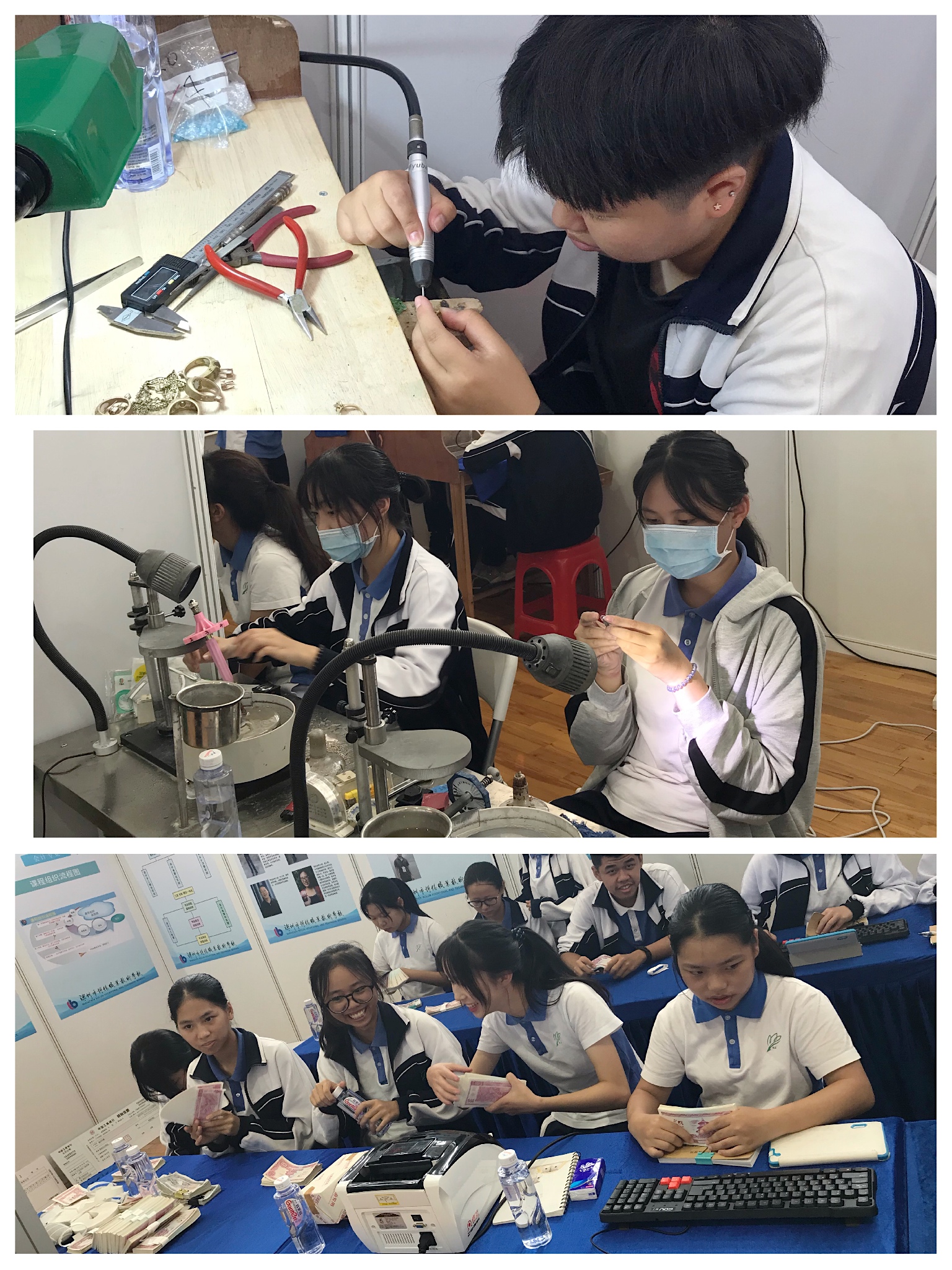 本次創新成果展分為四個會場。主會場為學校10個專業的創新成果展示,館內中央為藝術專業學生展演,為會場營造了濃厚的藝術氣息。珠寶專業展台星光熠熠,與南山職教集團的成員單位合作一同展出珍貴的寶玉石作品;食品檢測專業飄香四溢,咖啡沖泡拉花、果盤切工了得,學子們一個個宛如專業的甜點師;電子應用專業則大玩「黑科技」,無人機編程意念飛控、機械手臂操作、虛擬現實體驗等讓參展嘉賓嘆為觀止;傳媒專業攝影方向的學子更是操辦起證件照攝影,引來外賓頻頻拍照體驗。