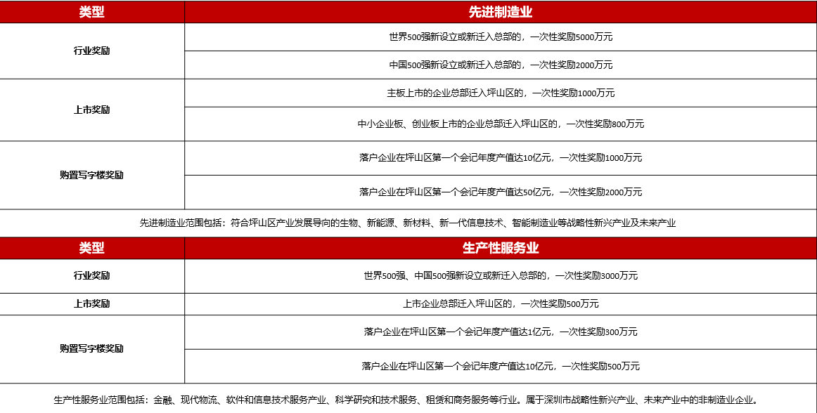 蘇建軍還詳細討論了坪山國家高新區出臺的62條招商引資獎勵扶持政策。以下為部分政策詳情: