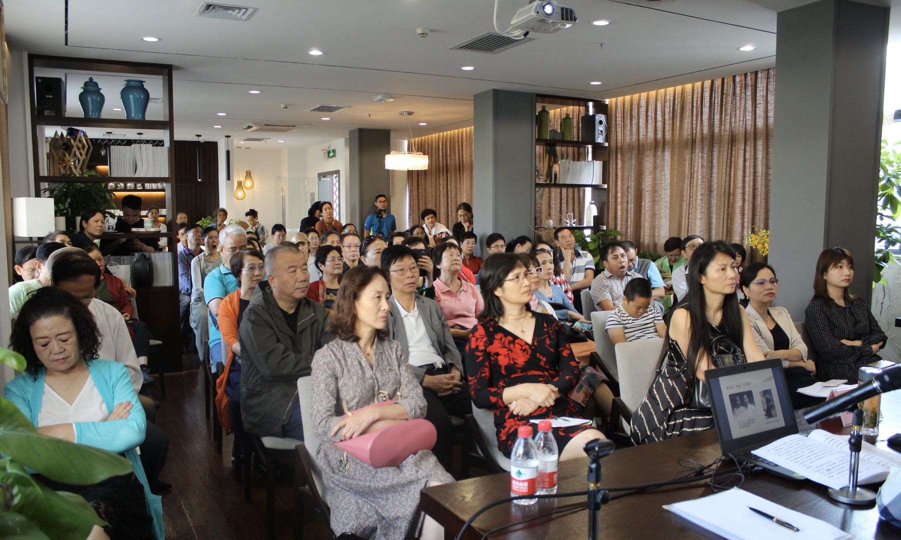 如此良機,怎可錯失?下午三點,上百名讀者朋友齊聚羅湖區圖書館五樓尚修學苑,現場座無虛席,其中不乏對這兩類特殊女性群體好奇者,也有部分是慕作家大名而來。蓮子不負眾望,甫一登場,便以不凡的談吐、優雅的氣度,讓人眼前一亮。她旁徵引博,先以詳實的數據為讀者們介紹了「陸配」(主要指嫁到台灣去的大陸女性)的基本情況,再分析了她們發展的三個階段,及其對海峽兩岸的民間交流、和平發展所起的作用。隨後,蓮子分享了兩個「陸配」的故事,指出「陸配」在檯面臨的困境,即婚姻適應、族群適應和社會適應等問題。但蓮子認為,她們絕不是「弱者」,是生活中真正的勇者和強者,用堅韌和自尊努力活出自己的生命樣式和精彩,傳遞着生生不息的力量。
