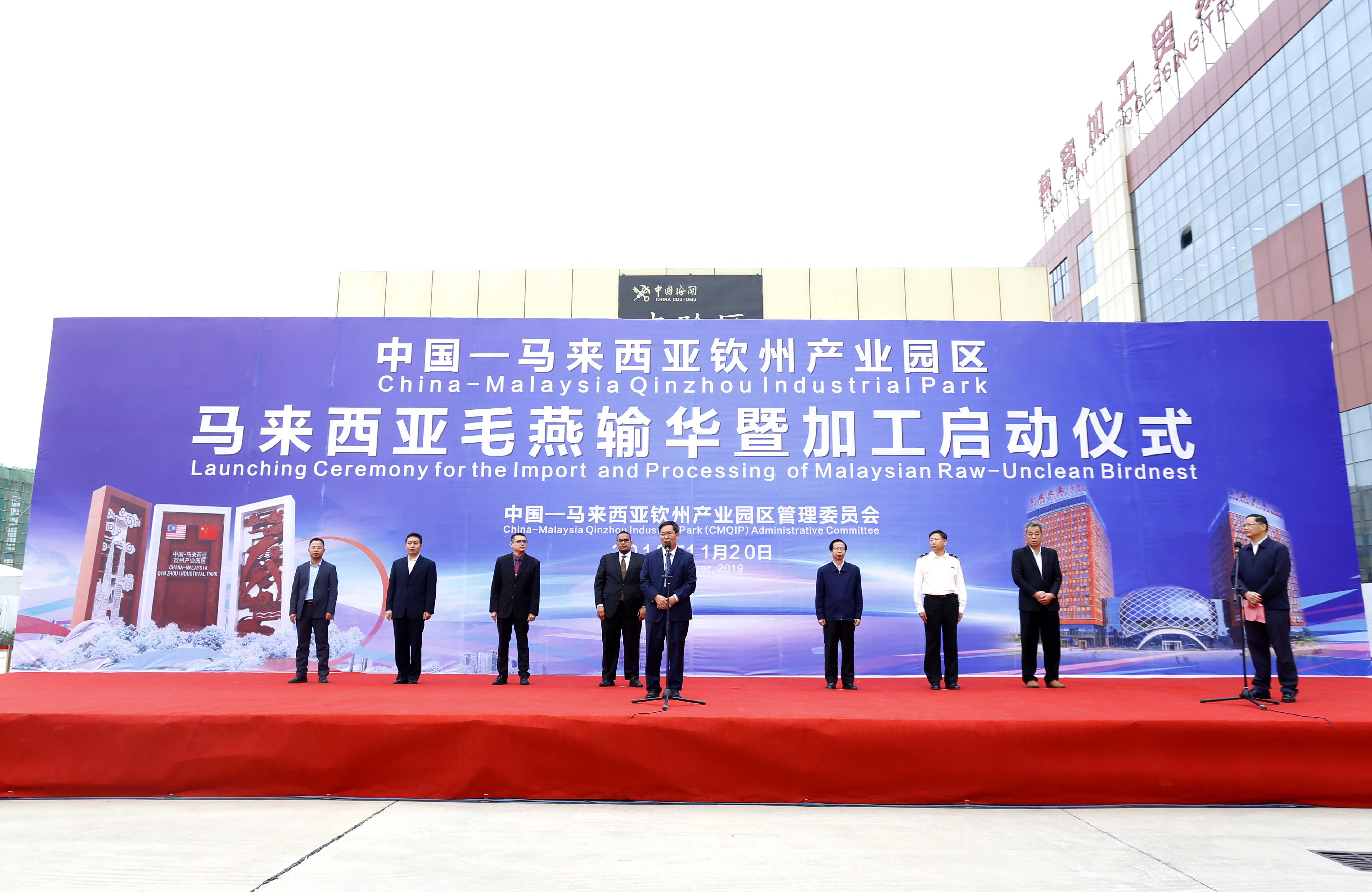 欽州市委副書記、中馬欽州產業園區管委會常務副主任高朴稱,此次馬來西亞毛燕輸華暨加工啟動,是中馬經貿合作的又一個標誌性工作,必將為深化兩國全方位合作提供新的契機。下一步,中馬欽州產業園區將以馬來西亞毛燕輸華和自貿試驗區建設為新起點,推進橡膠、棕櫚油等馬來西亞傳統優產業發展,強化與馬來西亞在人才合作培養、文化交流等領域的廣泛合作,並探索建設「兩國雙園」跨國自由貿易試驗區,為兩國企業相互投資創造更便利的條件,全面提升中國與馬來西亞經貿合作關係。