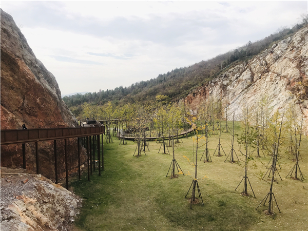 地處南京市江寧區的湯山自古以來就是採石場重地,2004年,根據江蘇省《關於關閉在嚴採區開山採石的通知》,湯山101家採石場被關閉。也正是在那時,湯山始向旅遊業發展轉型,次年即被評為國家級旅遊度假區。2017年,湯山立足可持續發展的生態文明建設理念,啟動了山體以南五個採石宕口的修復工程,這裡是目前湯山山體最大的廢棄礦坑,佔地面積約40公頃,而在不到兩年的時間裏一個集科普教育、休閑度假、溫泉娛樂於一體的特色礦坑體驗公園「橫空出世」。「立足『城市雙修』理念,我們集合了規劃、建築、設計、施工等30多家單位,對礦坑進行了生態修復和城市功能織補。」湯山溫泉旅遊度假區管委會工作人員表示。