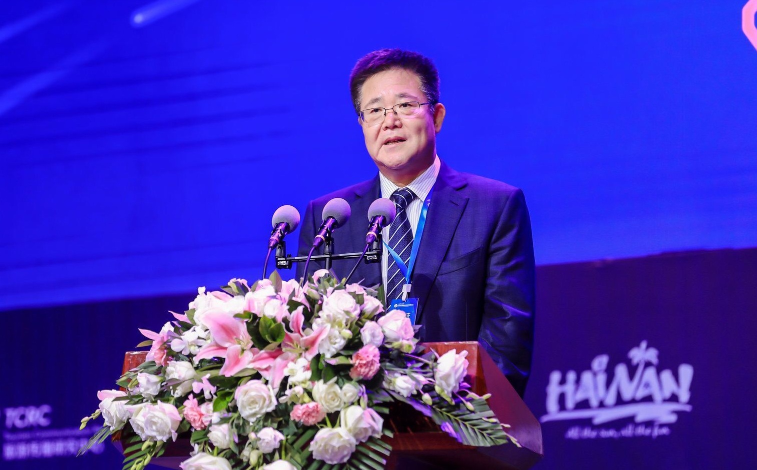 海南省旅遊和文化廣電體育廳黨組成員、副廳長曹遠新在論壇開幕式上致辭