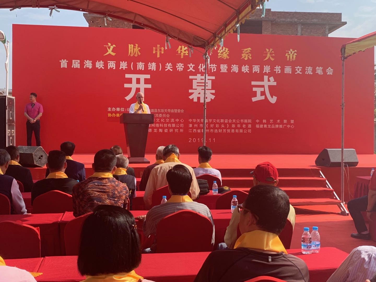 開幕式上,大鼓涼傘隊和腰鼓隊表演的《歡樂頌》為海峽兩岸風調雨順祈福,來自海峽兩岸的10餘位書畫家現場交流互動、揮墨書寫。開幕式結束後,來自海峽兩岸以及海外的上千名關帝信眾面向關聖帝君廟行三叩九拜之禮,並參觀海峽兩岸關公文化走廊。
