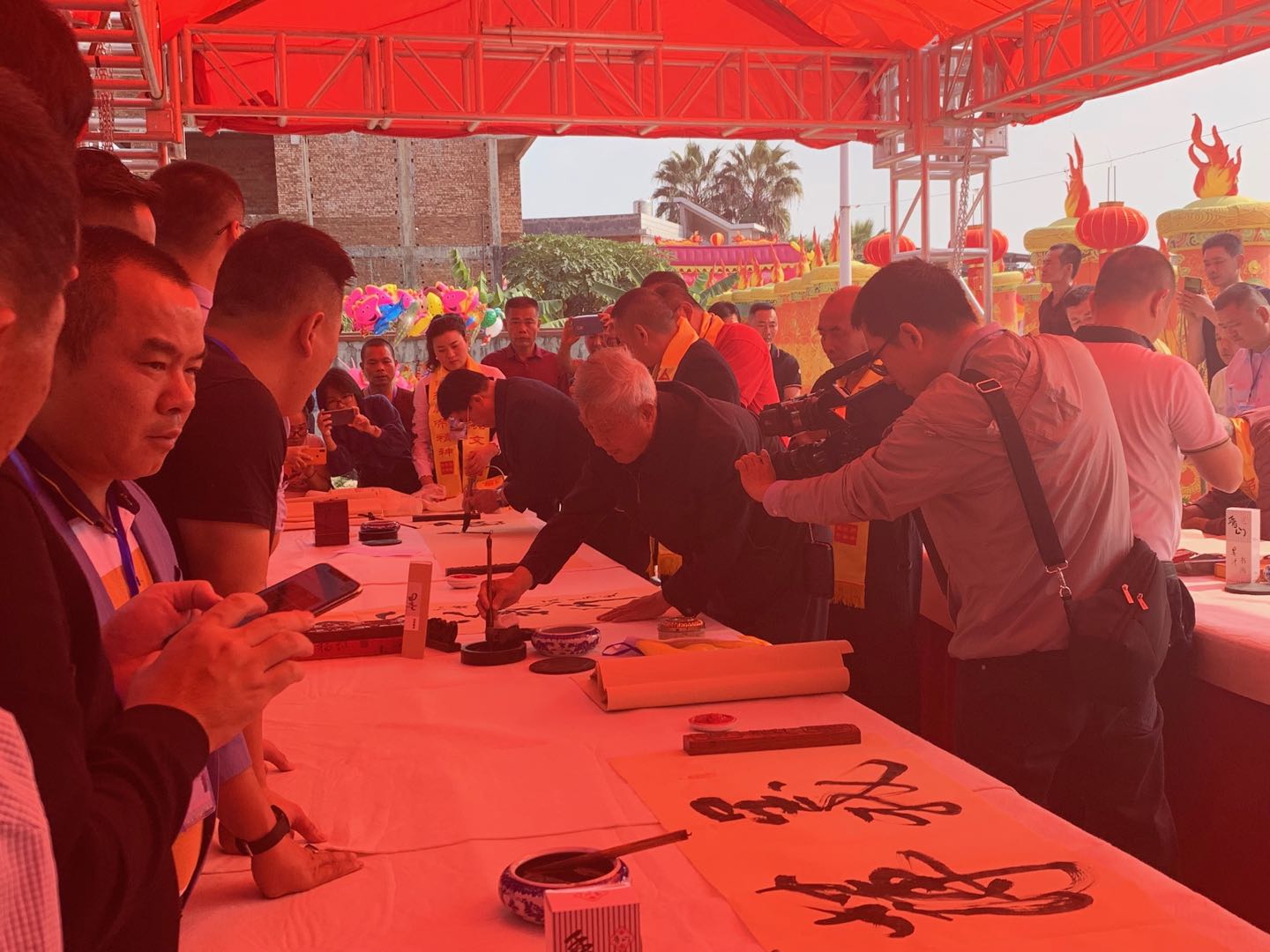 【香港商報網訊】11月25日上午,首屆海峽兩岸(南靖)關帝文化節暨海峽兩岸書畫交流筆會開幕,來自兩岸的關帝信眾和書畫家約1200多人齊聚福建南靖縣高新園東坂村,共慶盛典。