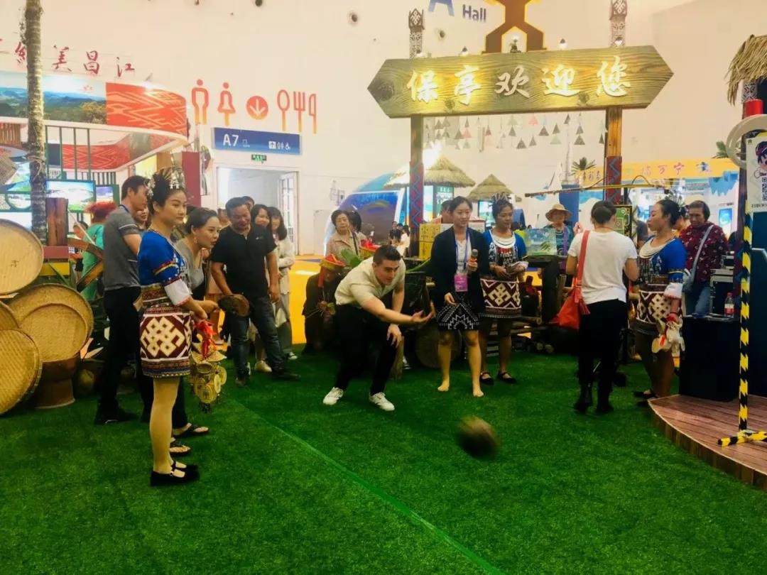 展會中,保亭展館前熱鬧非凡,編受遊客追捧。檳榔樹、山欄稻、黎族圖騰柱裝飾的保亭展館顯得格外醒目,現場極富民族特色的歌舞表演、竹木器樂演奏、黎錦、藤、制陶等非遺技藝體驗及趣味十足的互動活動,吸引眾多遊客駐足參觀體驗。展館內各參展企業帶來的文旅體驗和百香果、山欄米、土雞蛋等扶貧農副產品也受到眾多遊客的喜愛。