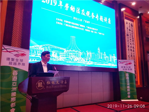 【香港商報網訊】11月26日,由香港特別行政區政府駐廣西聯絡處,與廣西自治區商務廳聯合主辦的「2019年勞動法及稅務專題講座」在廣西南寧舉行。活動旨在協助在桂港資企業及廣西夥伴掌握勞動法及稅務政策的最新發展。
