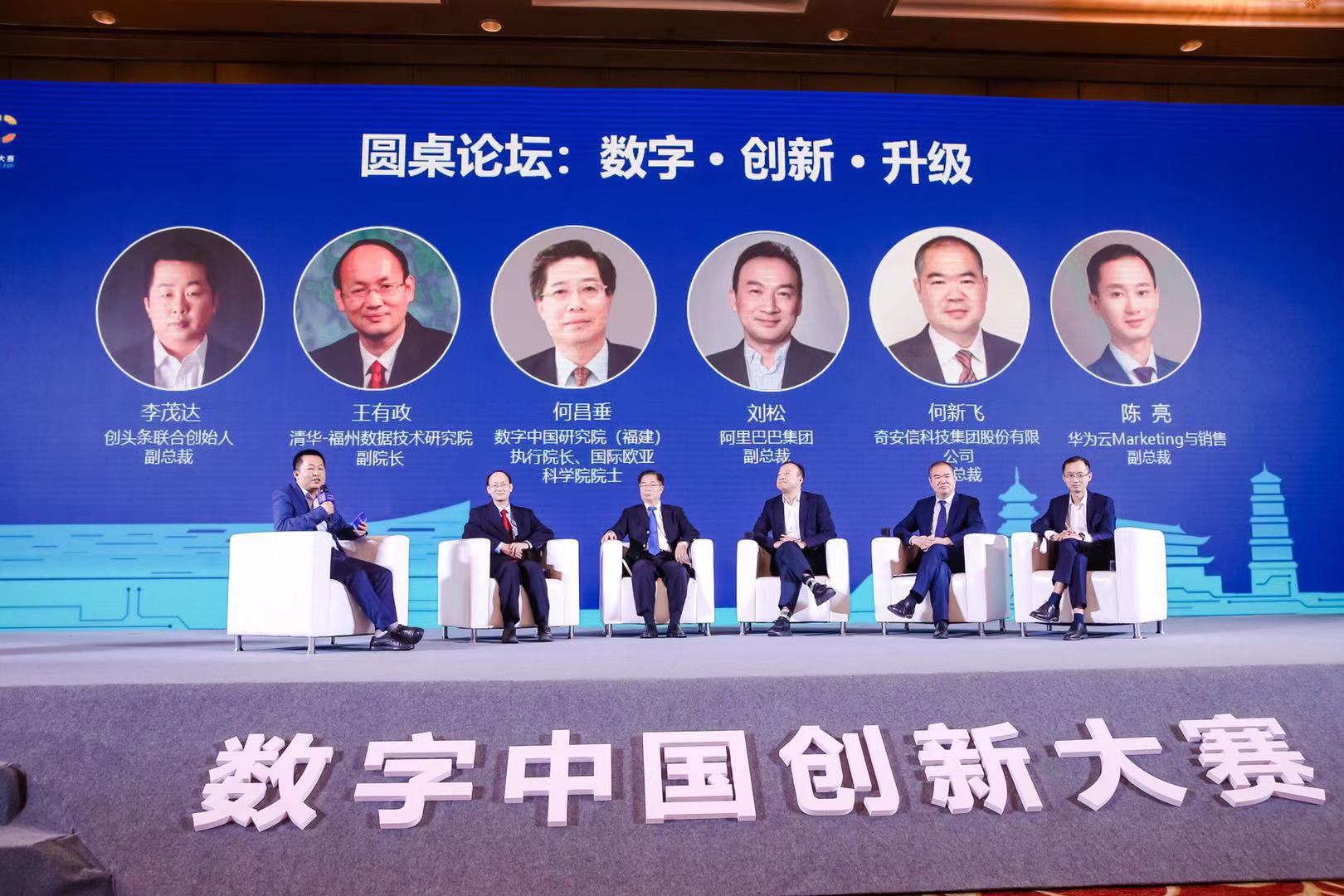 發佈會期間,還舉行了高端圓桌論壇。圍繞“數字·創新·升級”主題,數字中國研究院(福建)執行院長、國際歐亞科學院院士何昌垂,阿裡巴巴集團副總裁劉松、清華-福州數據技術研究院副院長王有政、華為雲Marketing與銷售副總裁陳亮、奇安信科技集團股份有限公司副總裁何新飛等,在創頭條聯合創始人、副總裁李茂達的主持下,結合各賽道領域的數字化變革,探討共用數字經濟發展之道。