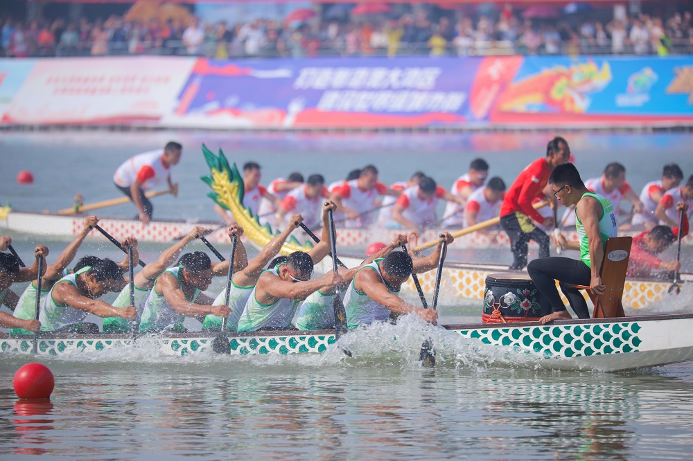 23日,參賽龍舟隊伍齊聚東莞華陽湖,湖岸四周亦擠滿觀賽群眾,龍舟競渡在觀眾的吶喊聲與鑼鼓聲中輪番上演。當天舉行了3000米繞標賽,與其它龍舟競渡賽事不同,3000米繞標賽因賽程距離遠、考驗耐力及團隊協作,享有龍舟「馬拉松」之稱。比賽中,各支隊伍每間隔20秒出發,隨着鼓點的輕重緩急,隊員們整齊劃一的動作使得船槳在水面上下翻飛,龍舟亦在水面上劈波斬浪,追趕之間,絲毫沒有慌亂,最終,中堂龍舟隊一路高歌,以11分37秒726的成功奪冠。