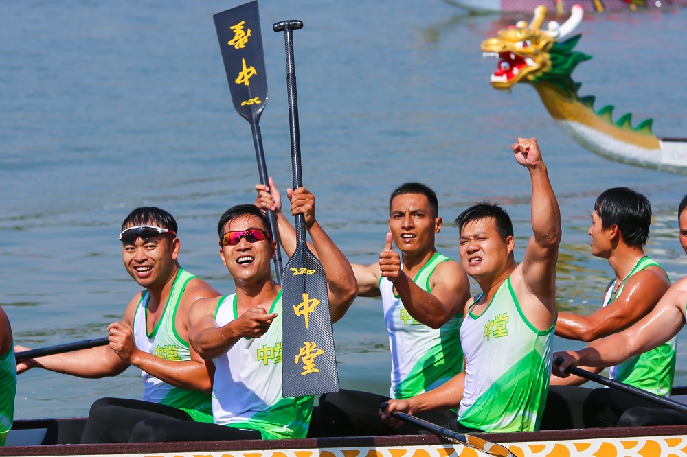 翌日再戰,500米直道競速決賽打響,中堂龍舟隊斬獲該項目兩區合作男子組冠軍。
