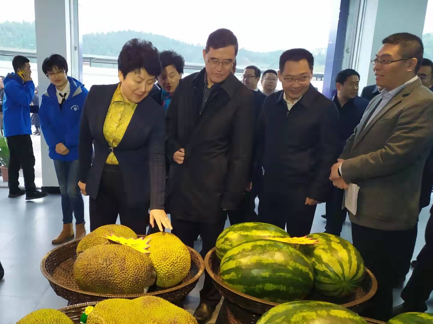 達州市委書記包惠(左一)、達州市市長郭亨孝(左二)視察東盟冷鏈(秦巴)分撥中心