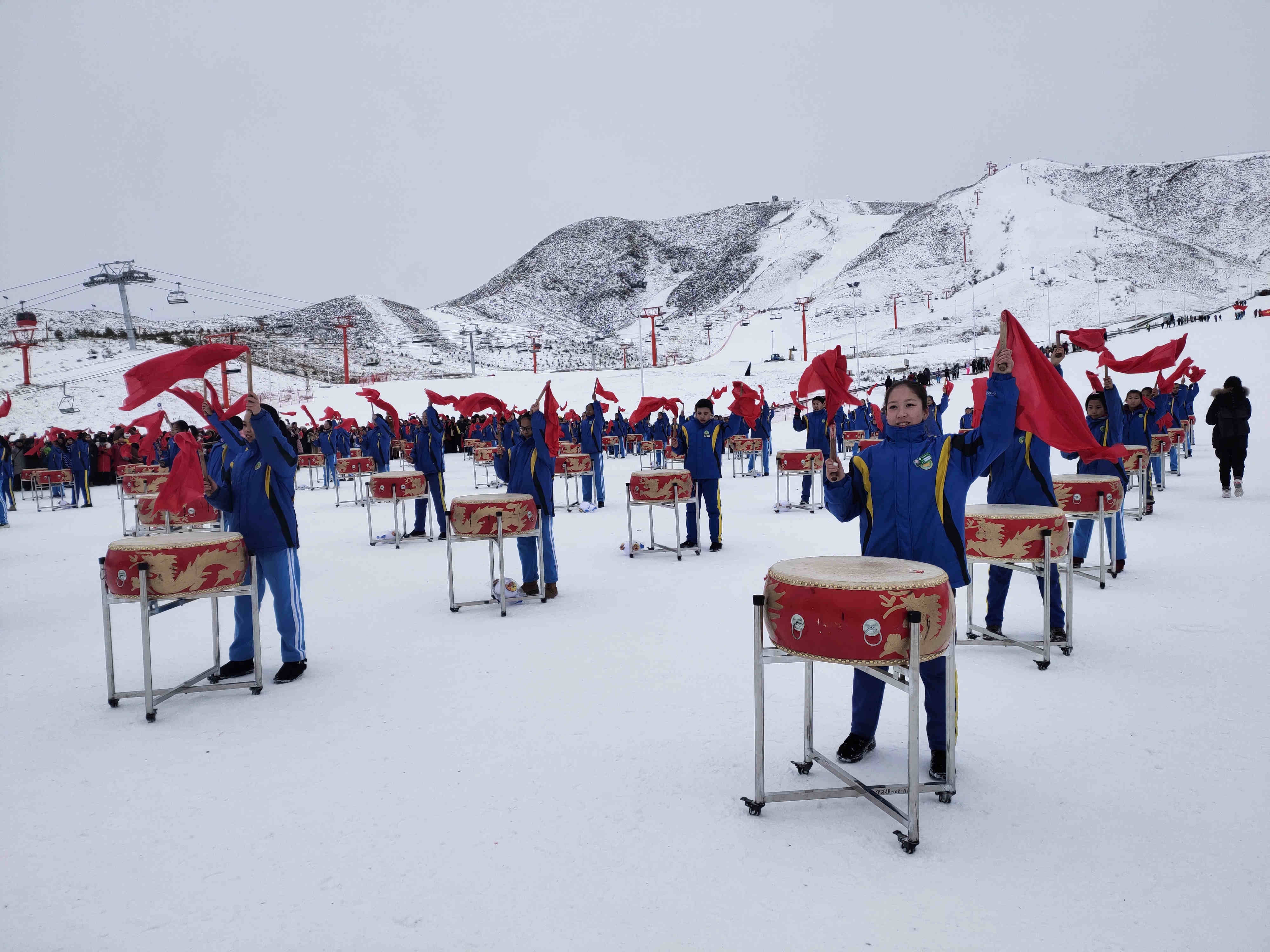 200名少年敲響威風鑼鼓、點燃雪都激情