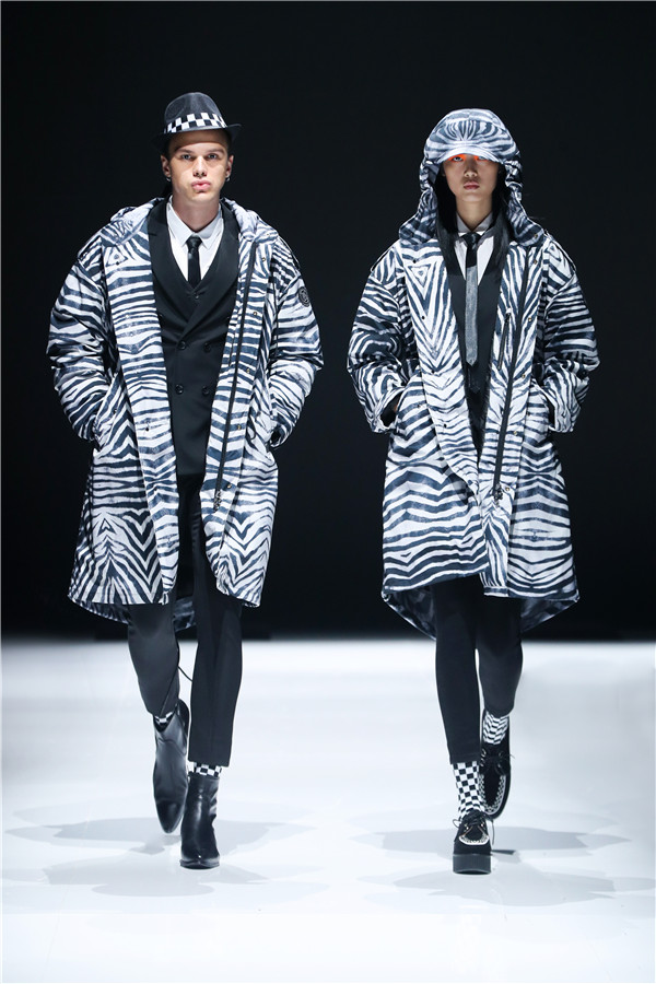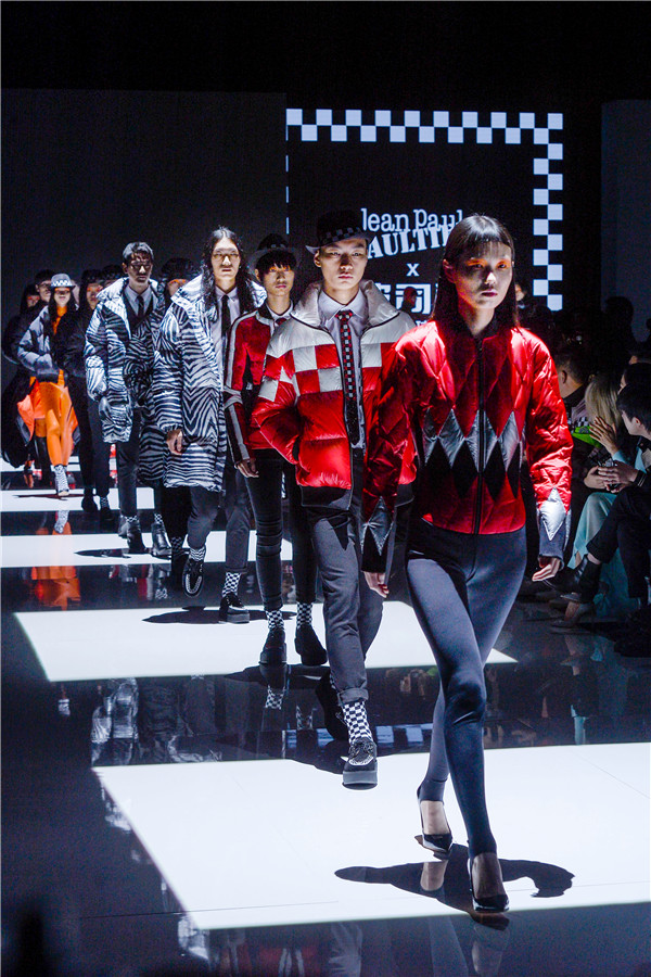 此次走秀的波司登x高緹耶設計師聯名系列,主題上主打元素為高緹耶設計理念中最經典的黑白撞色。聯名款傳承高緹耶虎紋、棋盤格等經典元素同時,承襲了波司登專業精湛的羽絨服科技和工藝。