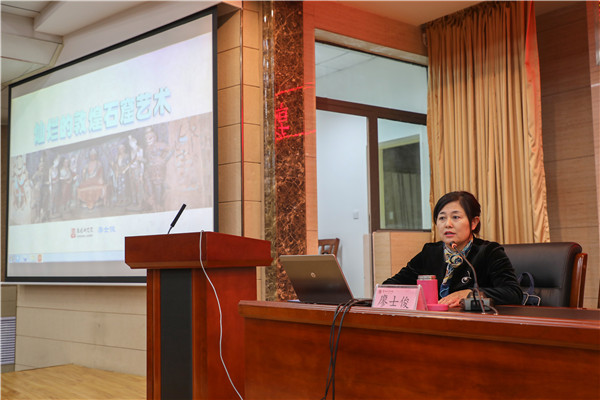 講座上,通過一幅幅精美的敦煌壁畫、一座座生動的石窟造像、一個個堅守敦煌的人物事迹和一卷卷珍貴的敦煌文獻,詳細介紹了敦煌莫高窟的形成淵源、發展歷史和文化底蘊,重點帶領大家領略了敦煌石窟藝術無與倫比的魅力,加深了廣大師生對敦煌文化藝術的系統了解和再認識。廣大師生在欣賞文化精品的同時,感嘆中華優秀傳統文化的博大精深。也被敦煌研究院這一先進集體幾十年如一日,紮根大漠、胸懷夢想、薪火相傳、為敦煌文化藝術的傳承保護和創新利用不懈奮鬥的優秀品格所感動。