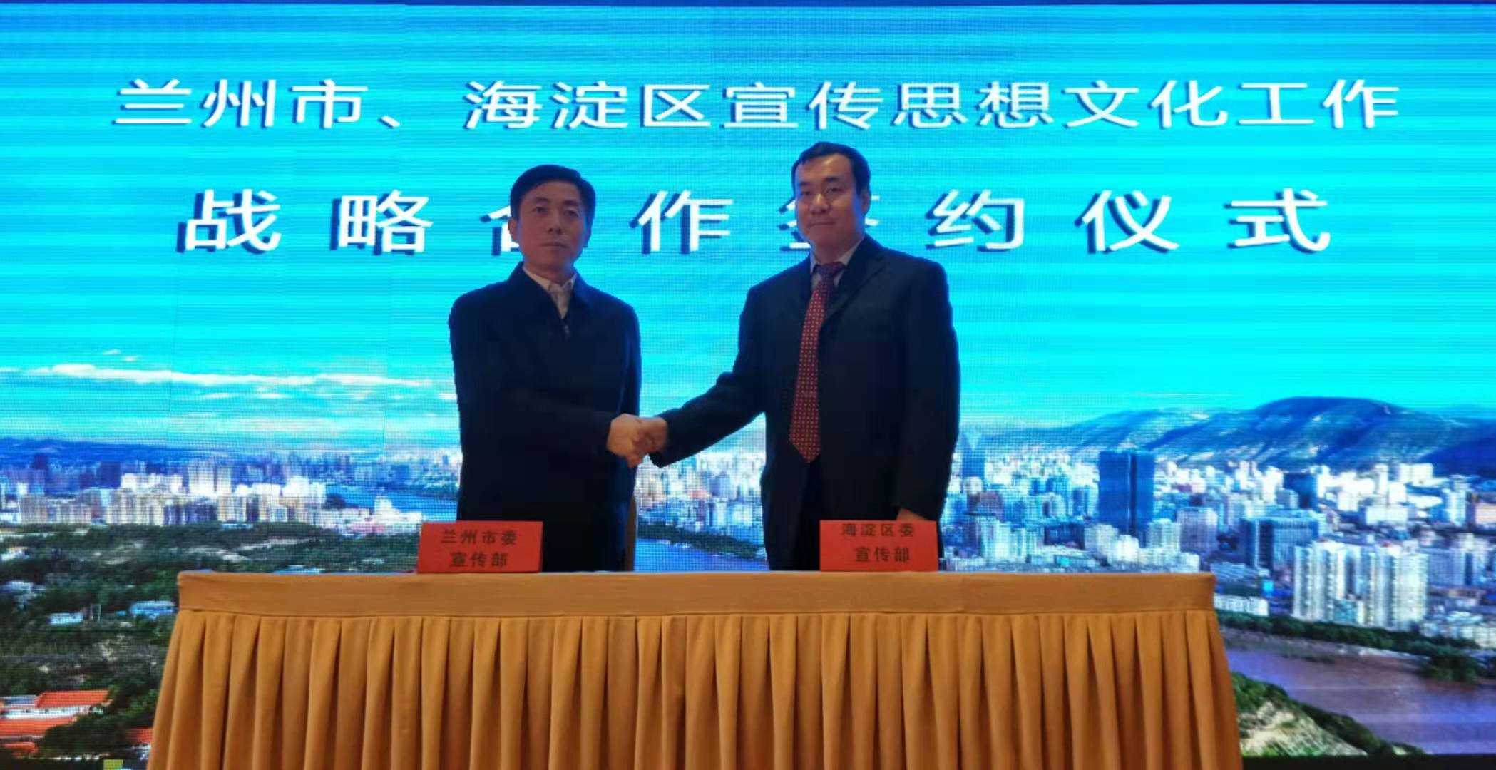 【香港商報網訊】記者 陳宏岩 報導:28日下午於甘肅蘭州舉行的蘭州市委宣傳部與北京市海淀區委宣傳部友好合作單位簽約儀式上,雙方簽署了宣傳思想文化工作戰略合作框架協議,就推動宣傳思想文化領域合作交流、對外宣傳推廣以及網絡信息安全等方面達成共識。