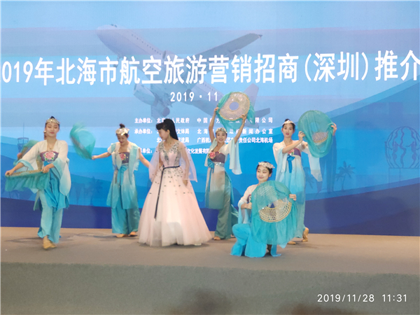 推介會在一場充滿南珠風情的舞蹈表演中開始,中間穿插北海特色沙畫表演、“導遊帶您游北海”PPT推介、特色歌舞表演等精彩內容,並通過佈置北海特色旅遊商品展示區及貝雕工藝現場製作區,讓到場的嘉賓深切地瞭解到北海獨具魅力的濱海休閒特色和濃厚的歷史文化底蘊。推介會現場還抽出了一、二、三等獎,獲獎嘉賓得到了深圳至北海的往返機票、酒店住宿、潿洲島船票、景區門票等豪華旅遊大禮包。