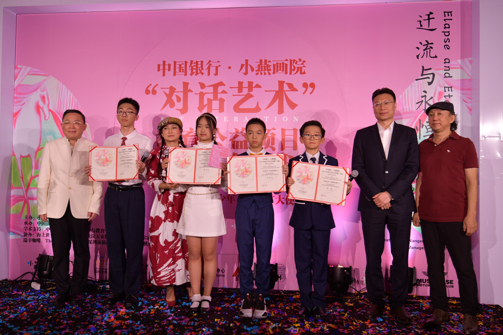 據悉,本次畫展由學者韓望喜、藝術家左正堯策展,小燕畫院主辦,中國銀行深圳分行承辦,中央美術學院藝術管理與教育學院提供學術支持,展覽將持續至12月30日。展覽開幕之際,吳小燕個人作品集《遷流與永恆》同步首發,本次畫展還融入了一個特別的部分——中國銀行·小燕畫院「對話藝術」教育公益項目。該項目基於吳小燕女士個人畫展,設計打造出了線上線下相結合的教育公益創新模式。即孩子們與藝術家對話後,用音頻記錄下自己對畫作靈感與創作過程的獨特視角,形成二維碼在畫展作品旁展示。觀展人員通過掃描二維碼即可收聽孩子們對大眾傳遞的藝術見解。