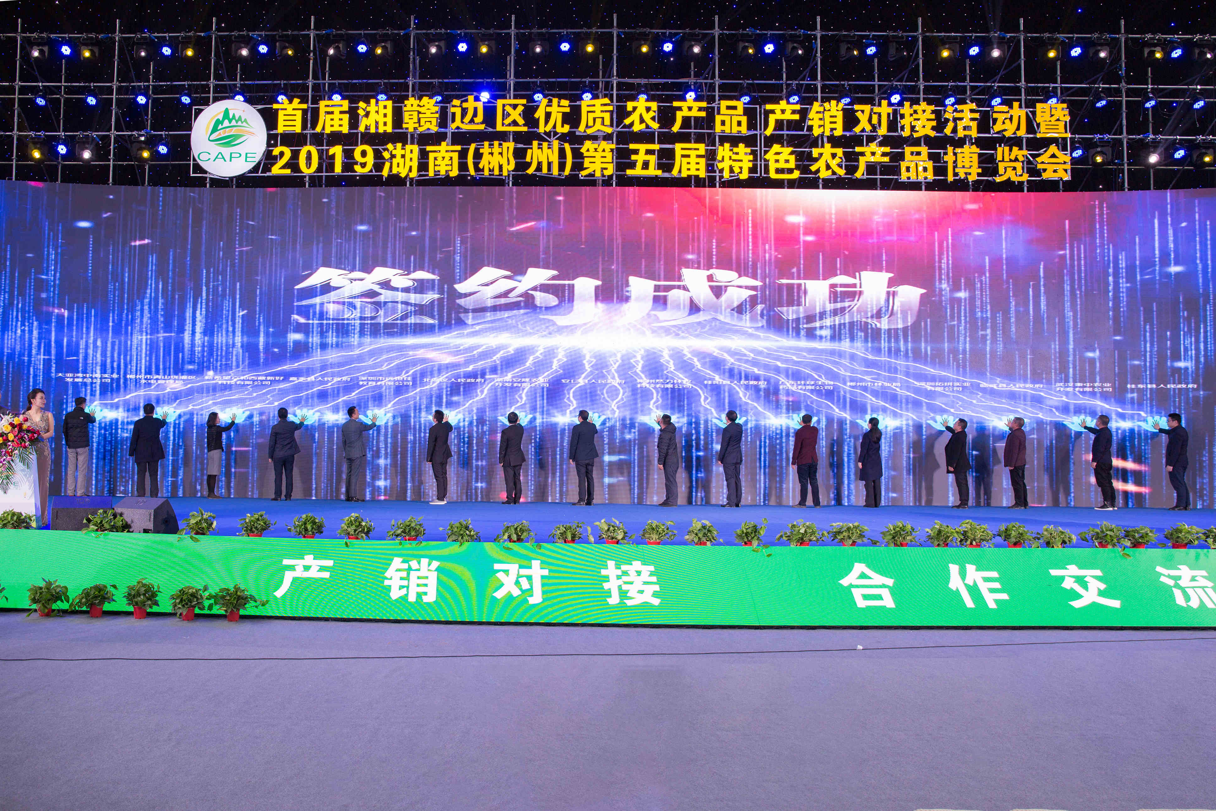 本屆展會以“產銷對接、合作交流”為主題,充分展示湘贛邊區的農業農村發展成果,實施特色優質農產品產銷對接,進一步促進湘贛兩省農產品貿易和農業對外合作交流,為助力產業精准扶貧、全面建設小康社會、推進湘贛邊區域合作示範區建設提供重要平臺。湖南省農業農村廳黨組成員、副廳長馬豔青與郴州市人民政府副市長陳榮偉簽訂《共同打造粵港澳大灣區優質特色食材基地合作協議》。湖南省農業科學院副院長鄧華鳳向郴州市人民政府副市長陳榮偉授與“湖南省農科院郴州分院”牌匾。