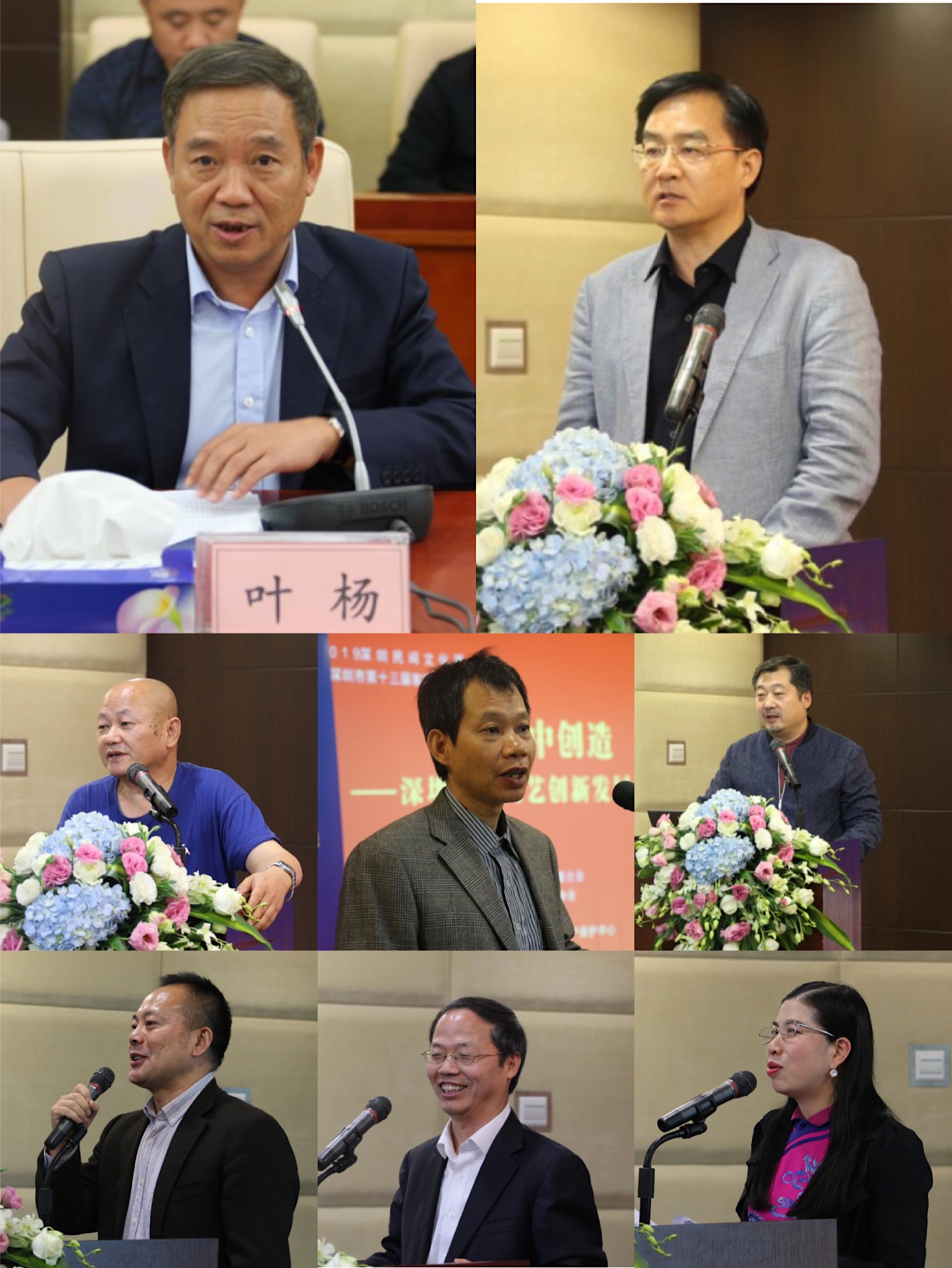 廣東省文聯副主席、深圳市文聯黨組書記、主席李瑞琦在致辭中表示,深圳隨着城市的發展探索出民間文藝的特色道路,來自全國的民間文藝在這裡生根發芽、創新發展,同時推動了城市文明的建設及經濟社會的發展。深圳民間文藝的創新發展有四個方面基因,一是加強組織建設,把民間文藝家凝聚起來;二是加強活動策劃,讓民間文藝動起來;三是加強創作指導,讓民間文藝家強起來;四是加強產業化探索,讓民間文藝富起來。李瑞琦主席充分肯定了深圳民間文藝的發展成果和成功經驗,同時對深圳民間文藝在現代化城市化背景下進行創造性轉化、創新性發展,做好「先行示範」寄予厚望。