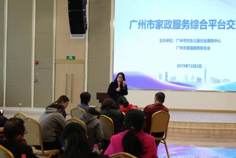 【香港商報網訊】記者 李苑立 報導:2日,「廣州市家政服務綜合平台交流會」(下稱「交流會」)在廣州仕馨母嬰成長中心舉行。這是自11月18日廣州市家政服務綜合平台(下稱「平台」)正式上線以來,全市超過100家家政企業參加本次以家政平台為交流重點的碰頭會。廣州市婦女兒童社會服務中心主任李嘉慶、廣州市家庭服務聯合會會長李麗蓉等參加會議。