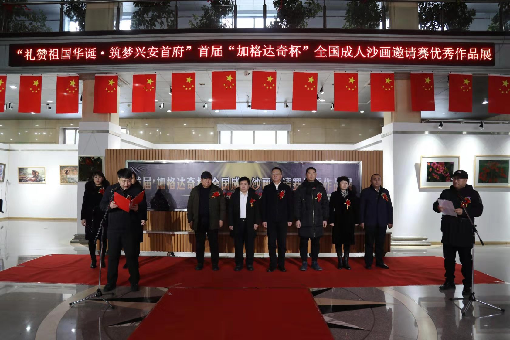 開幕式由加格達奇區區委常委、宣傳部長、統戰部長呂延廷主持,區委副書記李寧致辭。李寧在致辭中指出,文化是一個城市的內在靈魂,更是提升城市品質,推動城市發展的不竭動力。近年來,加格達奇區區委、區政府大力發展文化事業,打造了一批有智慧有才情、敢擔當敢創新、可信賴可依靠的文藝工作者隊伍,創作出了大量優秀文藝作品。尤其是加格達奇生態優良,文化豐厚,民風淳樸,獨有的資源優勢為沙藝創作提供了絕佳的藝術素材和創作靈感!希望廣大藝術工作者繼續主動承擔文化自覺與責任,在藉助展會平台,近距離感受固彩沙藝魅力的同時,更要把握難得的學習交流機會,向呂傑老師學習,向全國各地的優秀沙藝作者學習,潛心鑽研,刻苦創作,努力生產更多更好的沙畫藝術佳作,努力讓沙畫藝術在加格達奇進一步紮根繁榮、發展壯大,為促進全區經濟社會全面轉型發展,提供更加有力的文化支撐與貢獻。