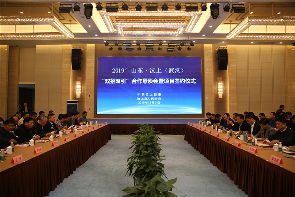 【香港商報網訊】12月3日,2019年山東·汶上(武漢)「雙招雙引」合作懇談會暨項目簽約儀式上在漢舉行,汶上縣負責人向現場200餘名社會各界人士推介了汶上優越的招商引資環境,並重點介紹了汶上目前實施的招才引智政策。會上,15個項目在現場集中籤約,簽約總金額達26.15億元。