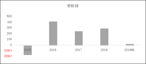 圖表:2015-2019H1碧桂園經營性現金流凈額(億元)