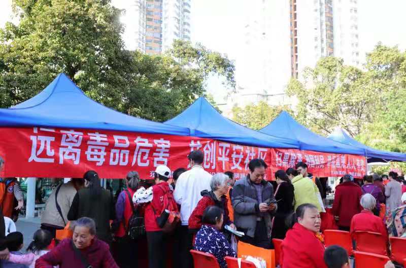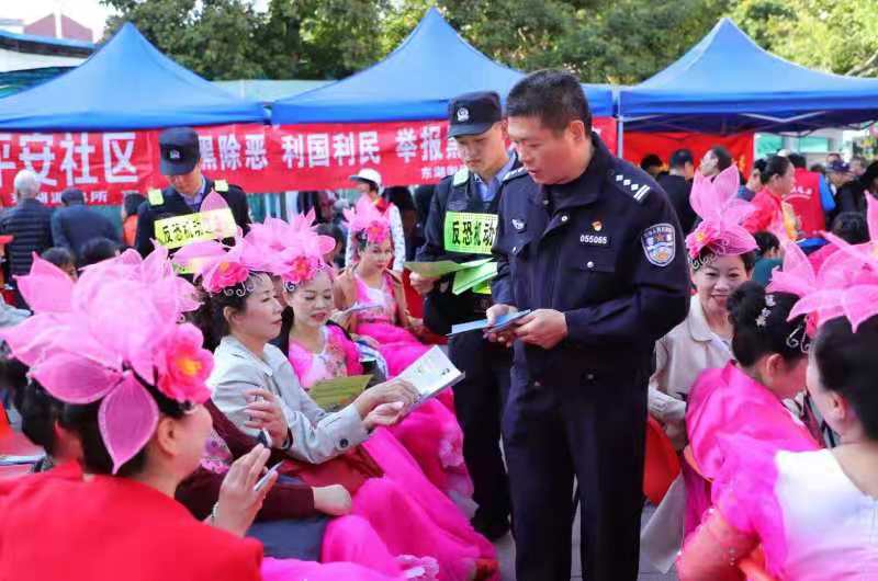 活動以文藝匯演的形式為主,設置宣傳資料發放點為輔的形式開展,通過設立平安創建、掃黑除惡等知識展板及設置平安創建、掃黑除惡、禁毒、反詐騙、反邪教等宣傳諮詢台,由工作人員派發宣傳資料,為群眾提供免費諮詢,引導廣大市民群眾樹立自我防範安全意識,共同營造平安和諧社會氛圍。活動期間還穿插着有獎知識問答環節,在場群眾積極主動,踴躍參與,現場氣氛十分熱烈。