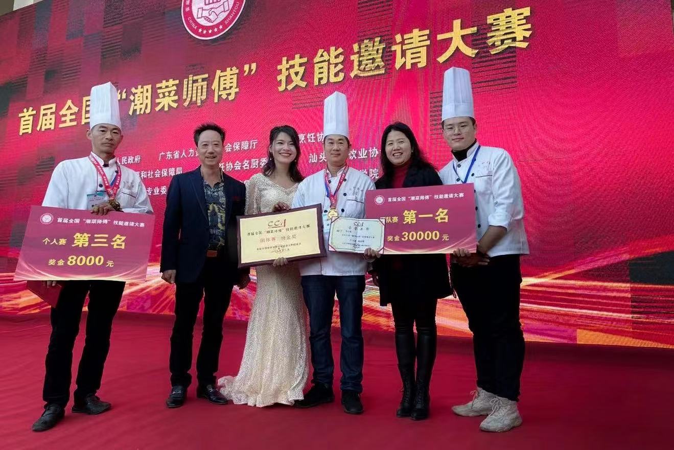 汕頭市餐飲業協會會長蔡振榮與潮菜師傅共享獲獎喜悅