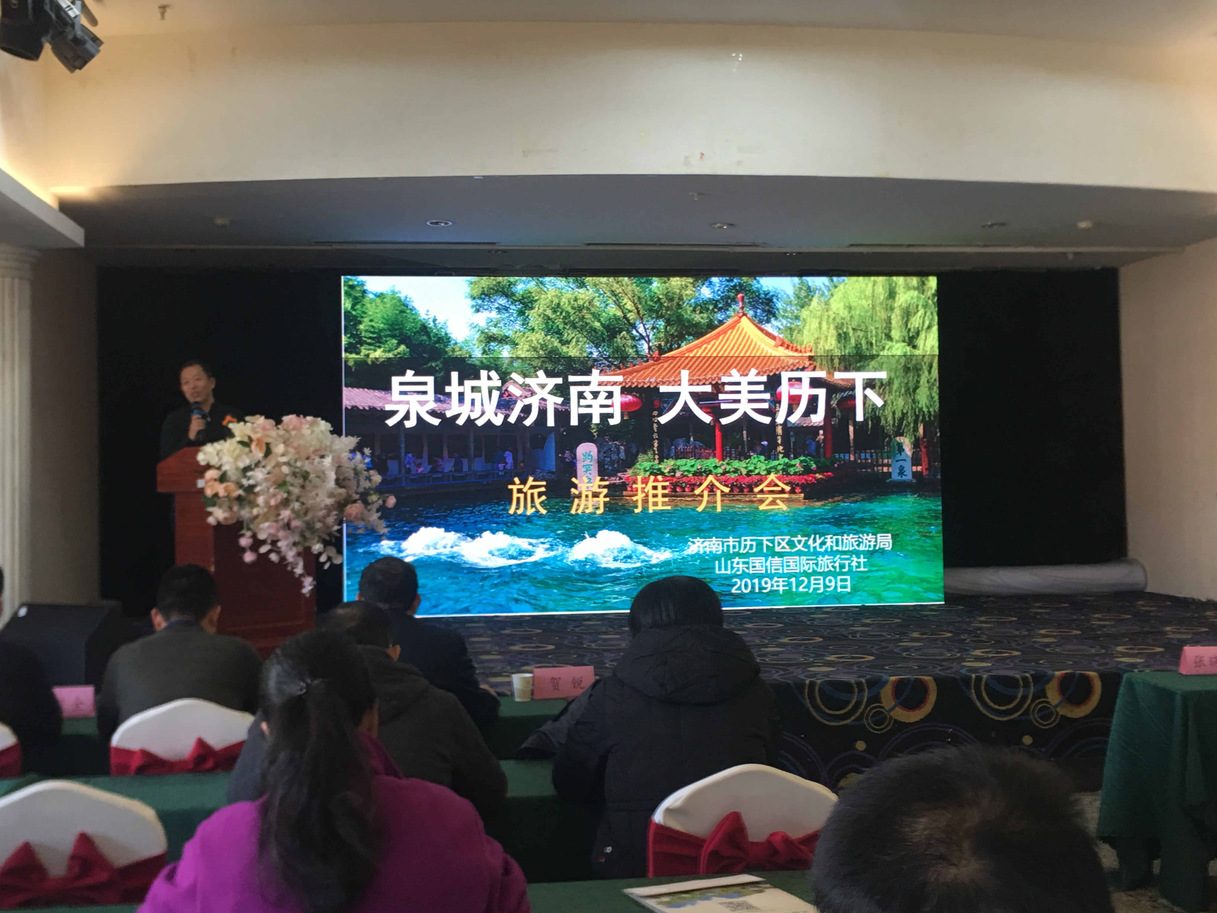 山水泉城,詩畫曆下。推介會上,山東國信國際旅行社董事長張曉國從“富、美、山、泉、湖、河、城”“名士、性格、美食、娛樂、秋冬”等方面多元化、立體化、全方位對曆下區文化和旅遊資源做出詳盡的介紹,並向在場的賓客推介精品旅遊線路。