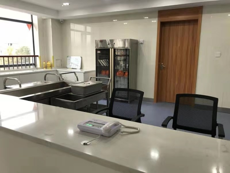 12月6日,記者來到新搬遷的蔡甸區社會福利院,這裡老人居住房間均按兩人一間的標準設計。房間里通了暖氣、冷熱水,安裝有數字電視和床頭櫃、衣櫃等配套設施,在獨立衛生間里配備了淋浴室、坐便器、扶手等服務設施。為保證老人的安全,在每個老人的床頭還安裝了「一鍵通」醫療救助呼叫系統。工作人員介紹說,為方便入住老人就餐,讓老人不用上下樓來回跑,每層樓還都設有食堂。
