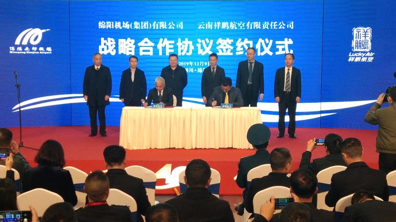 當天,綿陽南郊機場(集團)有限公司與雲南祥鵬航空有限責任公司簽訂了戰略合作協議。(張麗 張寶杉)