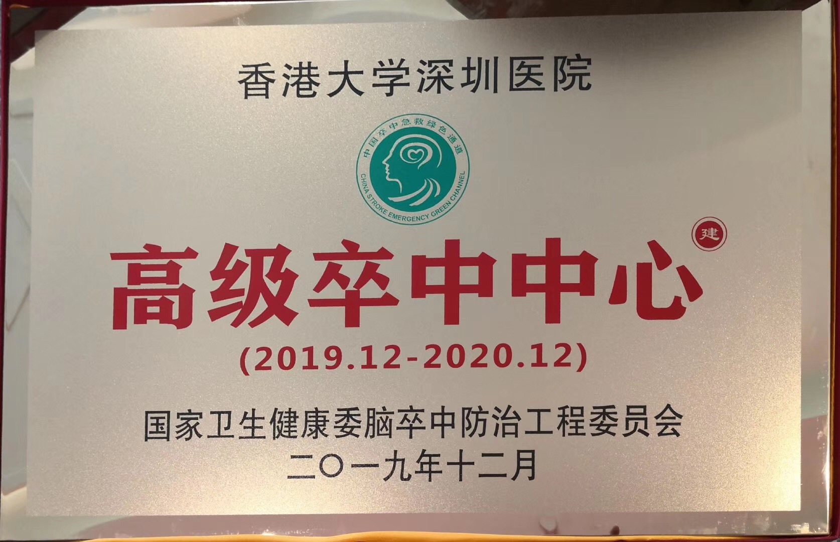 ●香港大學深圳醫院卒中中心委員會成立於2019年1月,於2019年12月2日成為國家高級卒中中心建設單位。包含神經內科、神經外科、急診科、血管外科、康復科、心內科、內分泌科、ICU、中醫科、影像科、超聲科、麻醉科、物理治療部、病理科14個臨床科室以及醫務管理部、資訊科技部、行政及後勤保障部等若干行政科室。