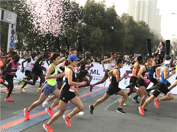 2019年錫馬在粉紅色「櫻花雨」中鳴槍起跑(本報資料圖)