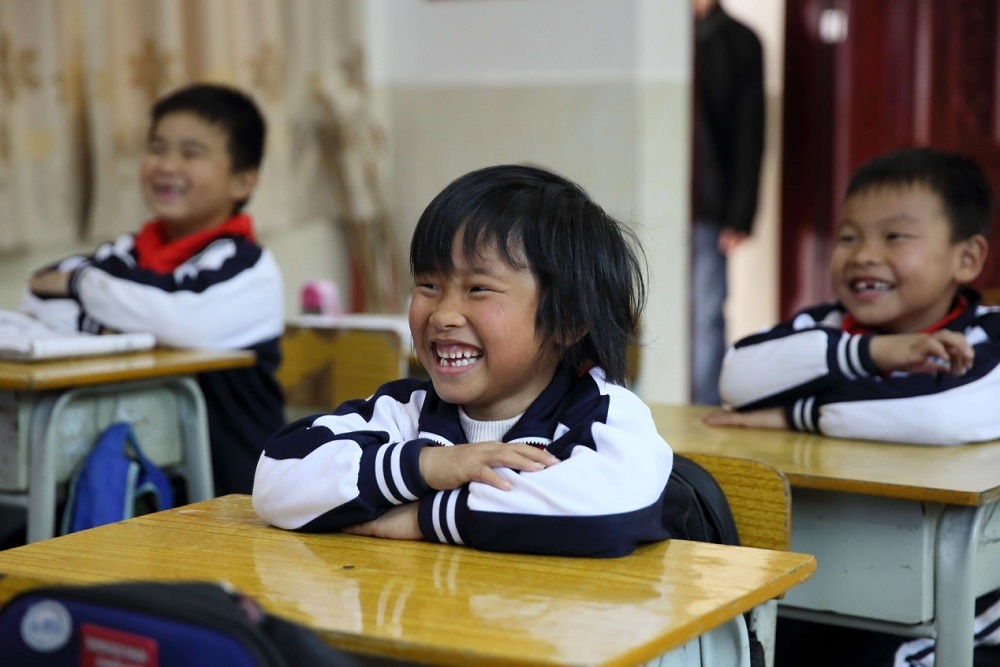 三正獎教助學金髮放現場,孩子們笑容燦爛