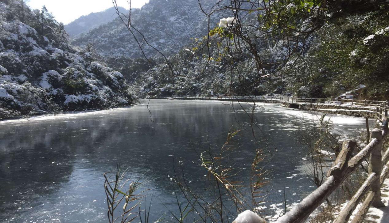 真正的原生態美景,滌盪心靈之旅。徽州大峽谷一年四季,變幻無窮:春天山花倒影,水光靈動;夏天草木搖曳,水鳥鳴啾;秋天紅葉似火,霞光滿湖;冬天銀裝素裹,冰湖凝然,分明是美麗的童話世界。