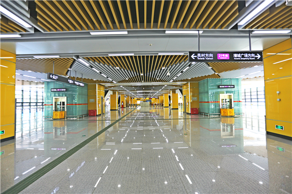 據了解,金坑站擴大綠化比例,綠地面積為5793平方米,綠地率為36.95%,可有效緩解場地熱島效應。車站採用玻璃幕牆設計,幕牆可見光反射比控制在0.2以內,不對周邊建築產生光污染。同時,景觀照明注意控制影響行人、機動車的干擾光,控制燈光對動植物生存和生長的影響。車站無直射光射入空中,景觀照明採取智能照明控制器實現不同時段的定時控制,並能通過轉換進行手動控制。