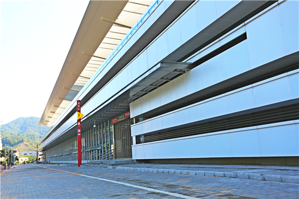 此外,車站屋面安裝了太陽能光伏發電系統,共628塊多晶硅雙玻組件光伏發電板,4台組串式逆變器,裝機容量163.28kW,太陽能光伏發電量佔總用電量比2.42%。建築外牆均採用礦棉、岩棉、玻璃棉板進行保溫,外窗採用隔熱LOW-E中空玻璃進行保溫,節能率為53.35%。同時,車站光源採用LED燈盤,均配緊湊型熒光燈、LED等節能型光源。